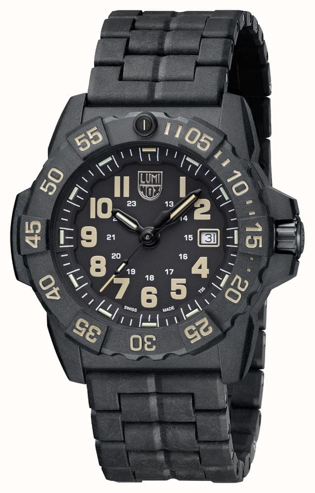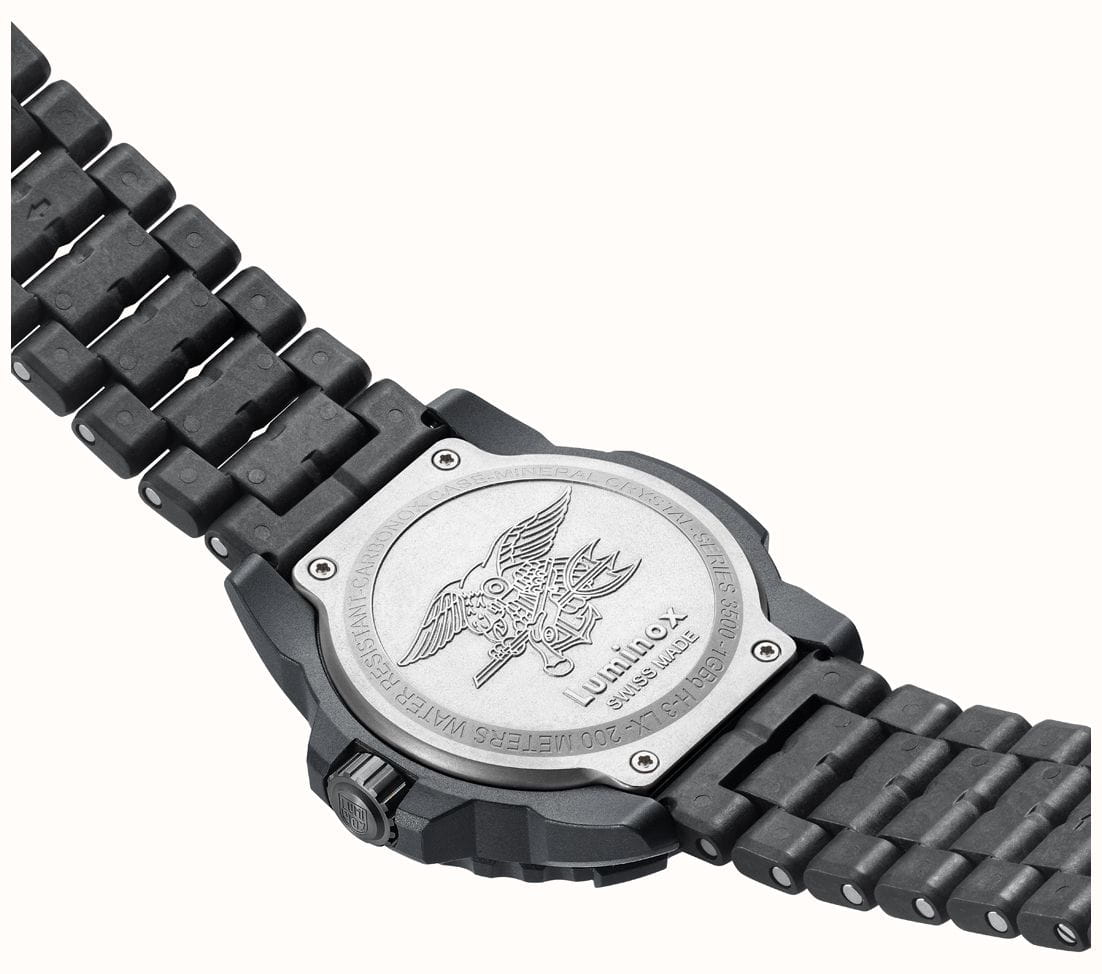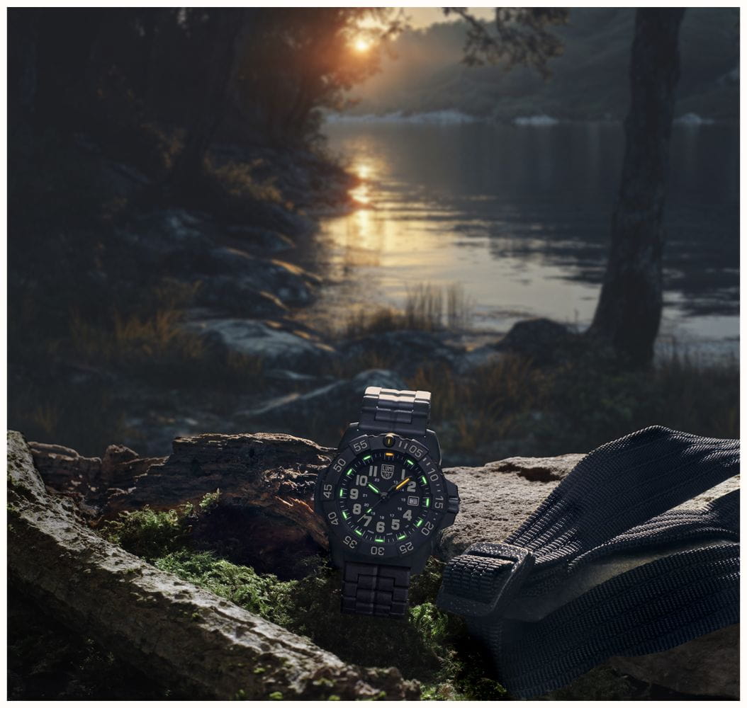 Мужские наручные часы Luminox XS.3510 из коллекции Navy SEAL сочетают в себе спортивный дизайн и надежность швейцарского качества . Модель обладает круглым корпусом диаметром 45 мм, изготовленным из карбонаКарбонОт «carbon», «carbone» - углерод, углепластик - полимерный композиционный материал из переплетённых под определенным углом между собой нитей углеродного волокна, применяется для изготовления лёгких, но прочных деталей. В часах часто используют для украшения циферблатов и ремешков. Так же карбон используется в изготовлении корпусов. Такие корпуса обладают антикоррозионным свойством, не поддаются электромагнитному излучению, обладают повышенной прочностью и противоударностью. (CARBONOX™), что обеспечивает высокую устойчивость к внешним воздействиям при сохранении легкости . Циферблат черного цвета украшен контрастными метками и стрелками с люминесцентным покрытиемЛюминесцентное покрытиеПозволяет считывать показания времени в темноте. Производители наносят на стрелки, часовые индексы, безель или поверхность циферблата светонакопительный состав, дающий холодное свечение., гарантирующим постоянную видимость времени даже в условиях низкой освещенности благодаря системе LLTLLTLLT — это автономный механизм подсветки, основанный на использовании микроскопических газонаполненных элементов. Специальные герметичные капсулы из боросиликатного стекла, интегрированные в циферблат, генерируют свечение без необходимости подключения к внешним источникам энергии. Для их работы не требуется ни дополнительный свет, ни механическое воздействие (например, нажатие кнопки). Свечение возникает благодаря химическому процессу: реакция между тритием, заключенным в капсулах, и люминофорным покрытием создает стабильное автономное освещение. Технология обеспечивает энергетическую независимость и долговечность подсветки. (микрогазовые огни) . Часы оснащены кварцевым механизмом швейцарского производства Ronda 715, обеспечивающим точность хода ±15 секунд в месяц . Защиту циферблата обеспечивает прочное минеральное стеклоМинеральное стеклоМинеральное стекло представляет собой искусственно выращенный минерал кварца. Такое стекло отличается особой устойчивостью к повреждениям и царапинам. Уступает по некоторым качествам сапфировому стеклу. с антибликовым покрытиемАнтибликовое покрытиеСлой оксида металла в 0,13-0,3 микрон, благодаря которому стекло часов не бликует и не отражает свет. Антибликовое покрытие уменьшает отражение света в 10 раз, обеспечивая отличную читаемость показателей циферблата., устойчивое к царапинам и механическим повреждениям . Водонепроницаемость модели достигает 20 атмосфер (200 метров), что делает их подходящими для плавания и активного отдыха на воде, включая дайвинг . Модель также оснащена безелемБезельВнешний ободок, закрепляющий стекло. В спортивных часах так называется поворотное кольцо с делениями на циферблате, выполняет роль таймера – замеряет отрезки времени на шкале. Неподвижный безель – элемент декора. Однонаправленно вращающийся безель на дайверских часах позволяет фиксировать моменты погружения и выныривания на поверхность. с односторонним вращением, что добавляет функциональности при использовании в водных условиях . Ремешок выполнен из черного полиуретана, что обеспечивает комфортное ношение в т