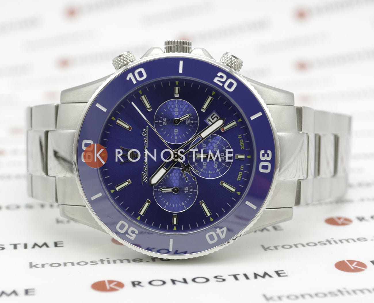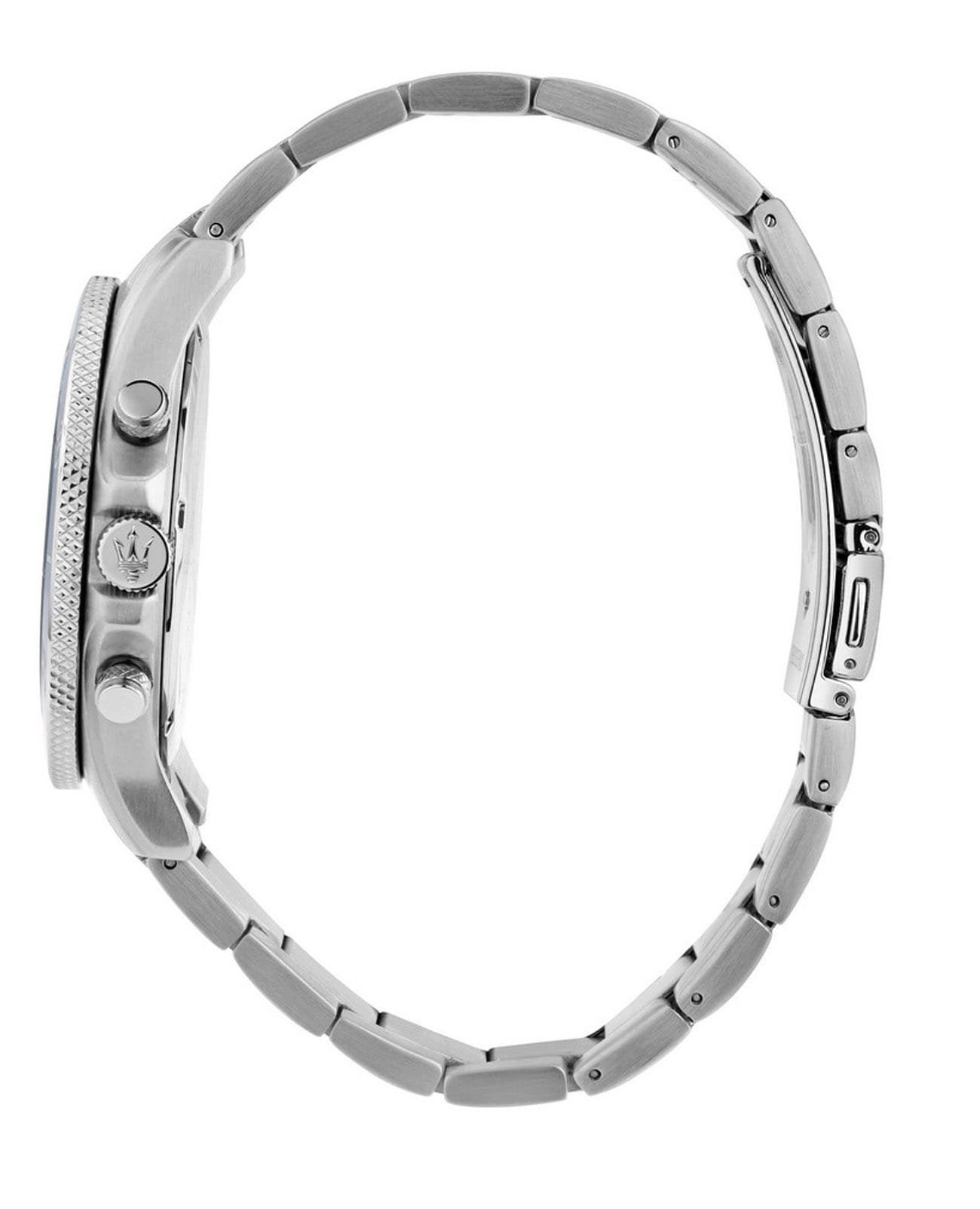 Мужские итальянские часы- хронографХронографФункция позволяет измерять отрезки времени с особой точностью: часы, минуты, секунды. Верным признаком хронографа является наличие на циферблате 3 дополнительных окошек-счётчиков. Maserati Competizione Chronograph R8873600002, кварцевый механизм с высокой точностью. Корпус часов изготовлен из стали. БезельБезельВнешний ободок, закрепляющий стекло. В спортивных часах так называется поворотное кольцо с делениями на циферблате, выполняет роль таймера – замеряет отрезки времени на шкале. Неподвижный безель – элемент декора. Однонаправленно вращающийся безель на дайверских часах позволяет фиксировать моменты погружения и выныривания на поверхность. из стали с PVD-покрытиемPVDУльтратонкое покрытие наносится в технике вакуумного напыления, сочетает в себе нитрид титана особой прочности со слоем золота или оксида хрома. Несёт в себе декоративную или защитную функцию.. Стрелки с люминесцентным покрытиемЛюминесцентное покрытиеПозволяет считывать показания времени в темноте. Производители наносят на стрелки, часовые индексы, безель или поверхность циферблата светонакопительный состав, дающий холодное свечение.. Класс водозащиты: 100 метров, позволит плавать, нырять и заниматься другими водными видами спорта. Стальной браслет на раскладной застёжкойРаскладная застёжкаТакой тип застёжки используется только на браслетах из металла. Она никогда не раскрывается полностью, происходит разделение на 2 и более частей. Раскладывающая застёжка снизит вероятность потери часов к минимуму..
