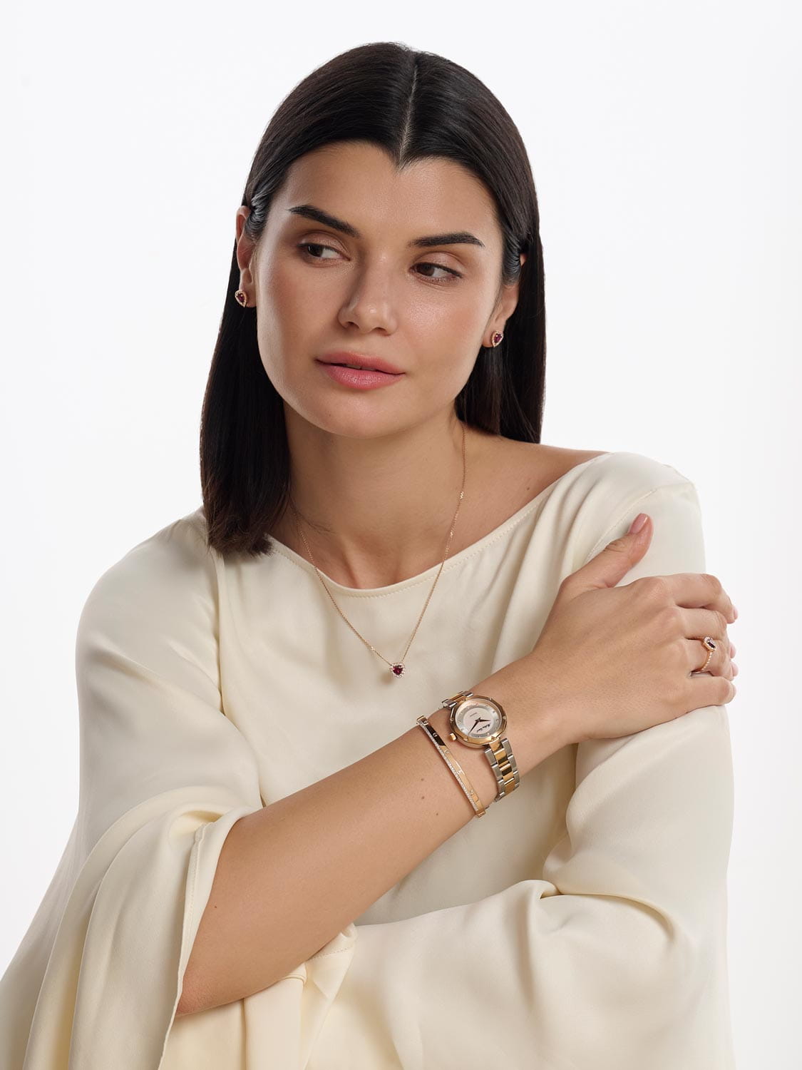 Женские кварцевые часы Mathey-Tissot Molly D1087BQI — это стильное сочетание элегантности и современного дизайна. Изящный корпус выполнен из нержавеющей стали серебристого цвета, диаметром 32 мм, что придаст образу элегантности и надежности. БезельБезельВнешний ободок, закрепляющий стекло. В спортивных часах так называется поворотное кольцо с делениями на циферблате, выполняет роль таймера – замеряет отрезки времени на шкале. Неподвижный безель – элемент декора. Однонаправленно вращающийся безель на дайверских часах позволяет фиксировать моменты погружения и выныривания на поверхность. с PVD-покрытиемPVDУльтратонкое покрытие наносится в технике вакуумного напыления, сочетает в себе нитрид титана особой прочности со слоем золота или оксида хрома. Несёт в себе декоративную или защитную функцию. и циферблат украшены кристаллами. Изысканный циферблат с метками в виде точек придает модели особый блеск. Циферблат защищен минеральным стекломМинеральное стеклоМинеральное стекло представляет собой искусственно выращенный минерал кварца. Такое стекло отличается особой устойчивостью к повреждениям и царапинам. Уступает по некоторым качествам сапфировому стеклу. с сапфировым покрытием, обеспечивает устойчивость к царапинам. Часы оснащены надежным кварцевым механизмом. Стальной браслет с частичным PVD-покрытиемPVDУльтратонкое покрытие наносится в технике вакуумного напыления, сочетает в себе нитрид титана особой прочности со слоем золота или оксида хрома. Несёт в себе декоративную или защитную функцию. на застёжке-бабочке с кнопкамиЗастёжка "бабочка"Такой вид застёжки дополняется предохранителями, помогающими избежать случайного раскрытия браслета. Обладают изящным исполнением. , гарантирует комфортное и безопасное ношение. Класс водозащиты: 50 метров позволит защитить корпус от случайных брызг или капель дождя. Mathey-Tissot  — отличный выбор для тех, кто ценит утонченность и качество.