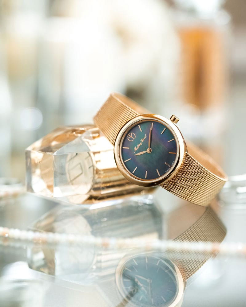 Женские кварцевые часы Mathey-Tissot Milly D403PN — это стильное сочетание элегантности и современного дизайна. Изящный корпус выполнен из нержавеющей стали с PVD-покрытиемPVDУльтратонкое покрытие наносится в технике вакуумного напыления, сочетает в себе нитрид титана особой прочности со слоем золота или оксида хрома. Несёт в себе декоративную или защитную функцию. цвета розового золота, диаметром 30 мм, что придаст образу элегантности и надежности. Изысканный перламутровый циферблат с метками в виде штрихов придает модели особый блеск. Циферблат защищен минеральным стекломМинеральное стеклоМинеральное стекло представляет собой искусственно выращенный минерал кварца. Такое стекло отличается особой устойчивостью к повреждениям и царапинам. Уступает по некоторым качествам сапфировому стеклу. с сапфировым покрытием, обеспечивает устойчивость к царапинам. Часы оснащены надежным кварцевым механизмом. Стальной браслет с PVD-покрытиемPVDУльтратонкое покрытие наносится в технике вакуумного напыления, сочетает в себе нитрид титана особой прочности со слоем золота или оксида хрома. Несёт в себе декоративную или защитную функцию. миланского плетения на раскладном замкеРаскладная застёжкаТакой тип застёжки используется только на браслетах из металла. Она никогда не раскрывается полностью, происходит разделение на 2 и более частей. Раскладывающая застёжка снизит вероятность потери часов к минимуму., гарантирует комфортное и безопасное ношение. Класс водозащиты: 30 метров позволит защитить корпус от случайных брызг или капель дождя. Mathey-Tissot  — отличный выбор для тех, кто ценит утонченность и качество.