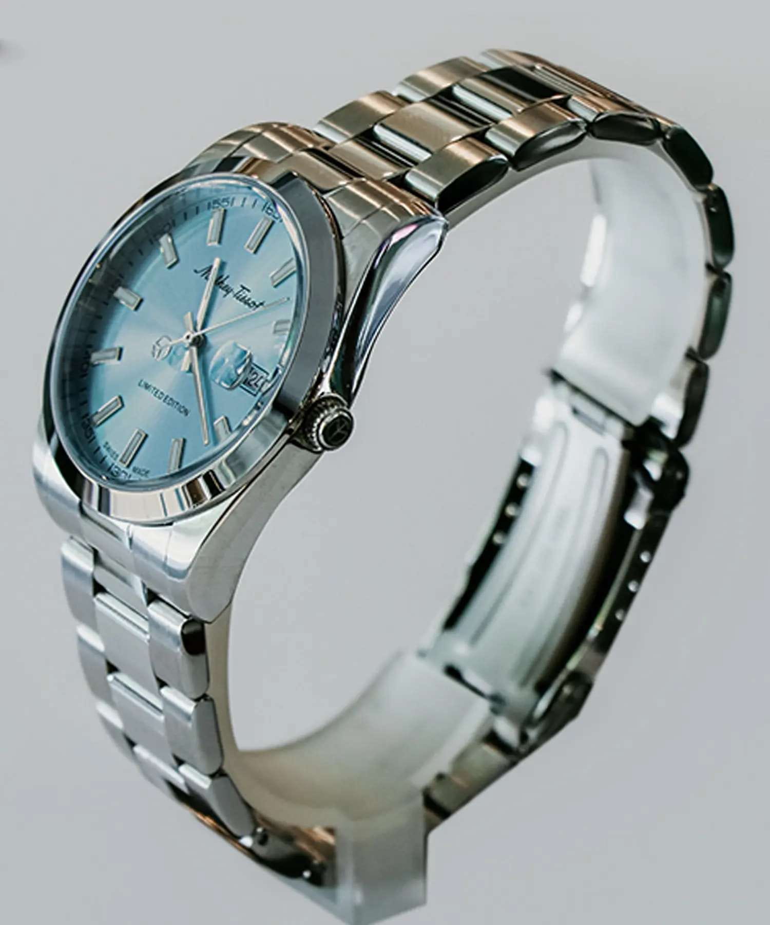 Мужские кварцевые часы Mathey-Tissot Mathy H451BU — это стильное сочетание элегантности и современного дизайна. Лимитированная серия. Изящный корпус выполнен из нержавеющей стали, диаметром 42 мм, что придаст образу элегантности и надежности. Изысканный циферблат с метками в виде штрихов придает модели особый блеск. Циферблат защищен минеральным стекломМинеральное стеклоМинеральное стекло представляет собой искусственно выращенный минерал кварца. Такое стекло отличается особой устойчивостью к повреждениям и царапинам. Уступает по некоторым качествам сапфировому стеклу., обеспечивает устойчивость к царапинам. Стрелки и метки с люминесцентным покрытиемЛюминесцентное покрытиеПозволяет считывать показания времени в темноте. Производители наносят на стрелки, часовые индексы, безель или поверхность циферблата светонакопительный состав, дающий холодное свечение.. Окошко даты находится в положении 3 часа. Часы оснащены надежным кварцевым механизмом. Стальной браслет на раскладной застёжке с фиксаторомРаскладная застёжкаТакой тип застёжки используется только на браслетах из металла. Она никогда не раскрывается полностью, происходит разделение на 2 и более частей. Раскладывающая застёжка снизит вероятность потери часов к минимуму., гарантирует комфортное и безопасное ношение. Рифленая заводная головка. Класс водозащиты: 50 метров, позволит защитить корпус от случайных брызг или капель дождя. Mathey-Tissot — отличный выбор для тех, кто ценит утонченность и качество.