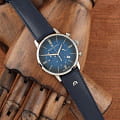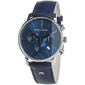 Синий кожаный ремешок с логотипом Maurice Lacroix оснащён системой быстрой замены, обеспечивающей удобство в использовании.