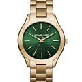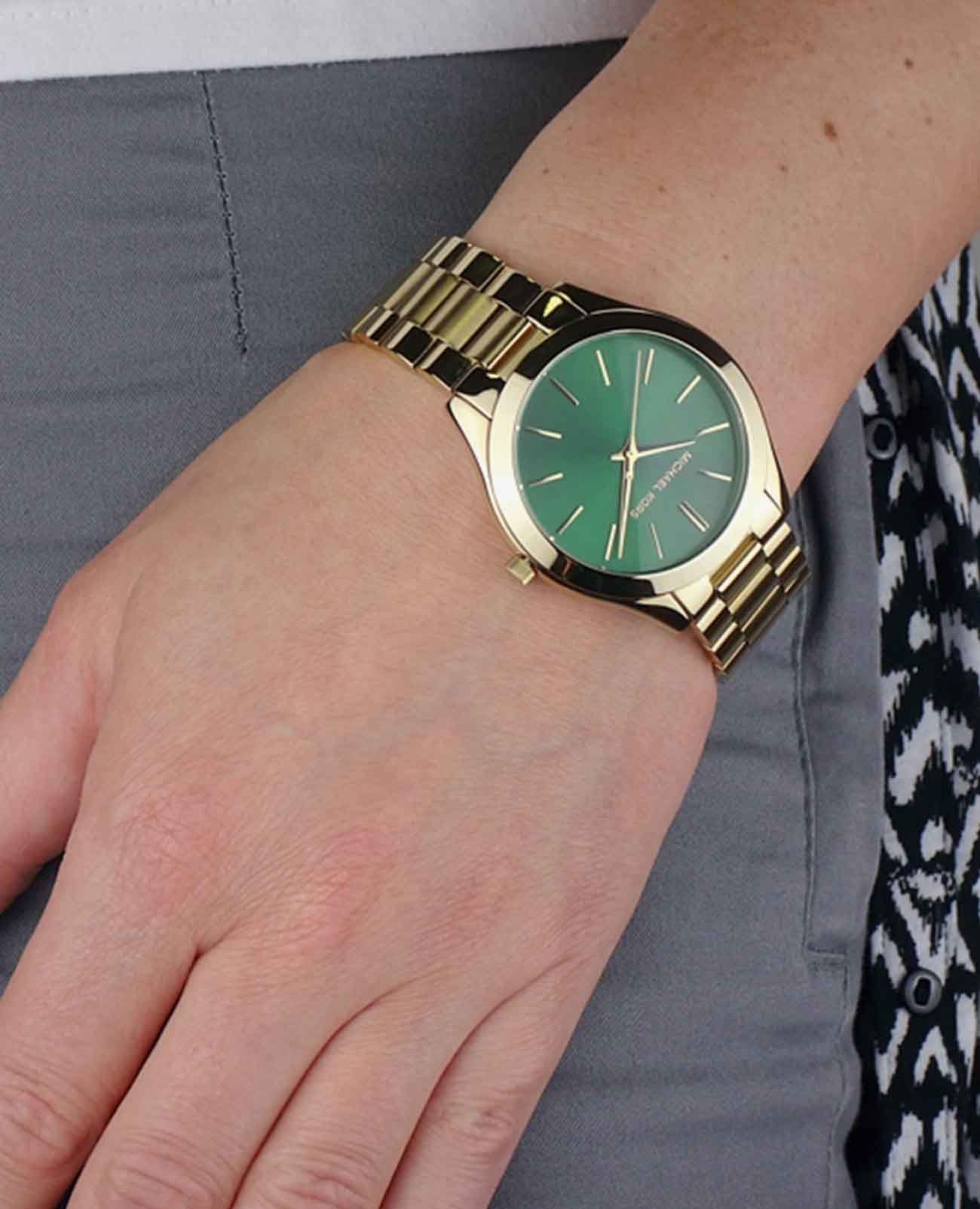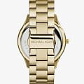Женские американские часы Michael Kors Slim Runway MK3435, кварцевый механизм с высокой точностью. Минеральное стеклоМинеральное стеклоМинеральное стекло представляет собой искусственно выращенный минерал кварца. Такое стекло отличается особой устойчивостью к повреждениям и царапинам. Уступает по некоторым качествам сапфировому стеклу., устойчивое к мелким механическим повреждениям. Корпус часов выполнен из нержавеющей стали с PVD-покрытиемPVDУльтратонкое покрытие наносится в технике вакуумного напыления, сочетает в себе нитрид титана особой прочности со слоем золота или оксида хрома. Несёт в себе декоративную или защитную функцию.. Класс водозащиты: 50 метров, позволит защитить корпус от случайных брызг или капель дождя. Стальной браслет с PVD-покрытиемPVDУльтратонкое покрытие наносится в технике вакуумного напыления, сочетает в себе нитрид титана особой прочности со слоем золота или оксида хрома. Несёт в себе декоративную или защитную функцию. на раскладной застёжкеРаскладная застёжкаТакой тип застёжки используется только на браслетах из металла. Она никогда не раскрывается полностью, происходит разделение на 2 и более частей. Раскладывающая застёжка снизит вероятность потери часов к минимуму..