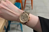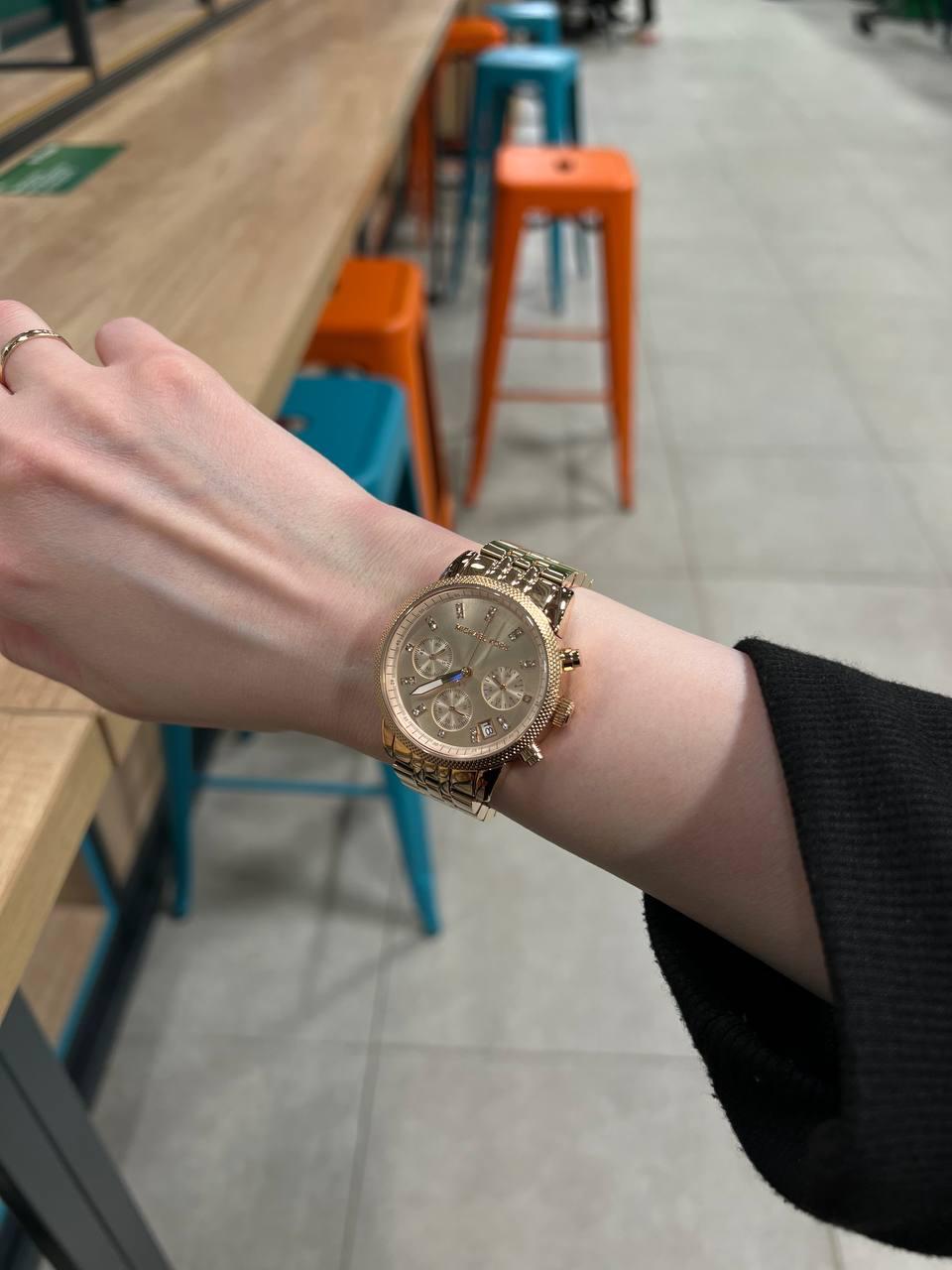 Женские американские часы- хронографХронографФункция позволяет измерять отрезки времени с особой точностью: часы, минуты, секунды. Верным признаком хронографа является наличие на циферблате 3 дополнительных окошек-счётчиков. Michael Kors Ritz MK6077, кварцевый механизм с высокой точностью. Минеральное стеклоМинеральное стеклоМинеральное стекло представляет собой искусственно выращенный минерал кварца. Такое стекло отличается особой устойчивостью к повреждениям и царапинам. Уступает по некоторым качествам сапфировому стеклу., устойчивое к мелким механическим повреждениям. Корпус часов выполнен из нержавеющей стали браслет с PVD-покрытиемPVDУльтратонкое покрытие наносится в технике вакуумного напыления, сочетает в себе нитрид титана особой прочности со слоем золота или оксида хрома. Несёт в себе декоративную или защитную функцию.. Циферблат украшен кристаллами. Стрелки с люминесцентным покрытиемЛюминесцентное покрытиеПозволяет считывать показания времени в темноте. Производители наносят на стрелки, часовые индексы, безель или поверхность циферблата светонакопительный состав, дающий холодное свечение.. Класс водозащиты: 100 метров, позволит плавать, нырять и заниматься другими водными видами спорта. Стальной браслет браслет с PVD-покрытиемPVDУльтратонкое покрытие наносится в технике вакуумного напыления, сочетает в себе нитрид титана особой прочности со слоем золота или оксида хрома. Несёт в себе декоративную или защитную функцию. на раскладной застёжкеРаскладная застёжкаТакой тип застёжки используется только на браслетах из металла. Она никогда не раскрывается полностью, происходит разделение на 2 и более частей. Раскладывающая застёжка снизит вероятность потери часов к минимуму..