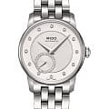 Скромность, граничащая с вызовом современности. Необычный механизм имеет вынесенную секундную стрелку. Сапфировое стеклоСапфировое стеклоПрочный и надёжный материал из кристалла сапфира синтетического происхождения, характеризующийся особой твёрдостью и устойчивостью к царапинам и повреждениям. устойчивое к появлению царапин, обладающее высокой прозрачностью. 24 бриллианта, окантовывающих циферблат секундной стрелки, подчеркнёт изысканность и утончённый вкус, а 12 бриллиантов вместо индексов подчеркнёт внимание к мелочам. Данная модель подходит не только для повседневной носки, но и дополнит композицию вечернего наряда или простого коктейльного платья. Женские швейцарские механические часы с автоподзаводом Mido Baroncelli II Lady M007.228.11.036.00, механический механизм (автоматический калибр) с высокой точностью. Класс водозащиты: 50 метров, позволит защитить корпус от случайных брызг или капель дождя. Корпус часов изготовлен из стали. Стальной браслет на раскладной застёжкеРаскладная застёжкаТакой тип застёжки используется только на браслетах из металла. Она никогда не раскрывается полностью, происходит разделение на 2 и более частей. Раскладывающая застёжка снизит вероятность потери часов к минимуму..