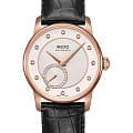 Скромность, граничащая с вызовом современности. Необычный механизм имеет вынесенную секундную стрелку. Сложное гильоширование циферблата притягивает внимание. 24 бриллианта, окантовывающих циферблат секундной стрелки, подчеркнёт изысканность и утончённый вкус, а 12 бриллиантов вместо индексов подчеркнёт внимание к мелочам. Данная модель подходит не только для повседневной носки, но и дополнит композицию вечернего наряда или простого коктейльного платья. Женские швейцарские механические часы с автоподзаводом Mido Baroncelli II Lady M007.228.36.036.00, механический механизм (автоматический калибр) с высокой точностью. Сапфировое стеклоСапфировое стеклоПрочный и надёжный материал из кристалла сапфира синтетического происхождения, характеризующийся особой твёрдостью и устойчивостью к царапинам и повреждениям. устойчивое к появлению царапин, обладающее высокой прозрачностью. Класс водозащиты: 50 метров, позволит защитить корпус от случайных брызг или капель дождя. Корпус часов изготовлен из стали с PVD-покрытиемPVDУльтратонкое покрытие наносится в технике вакуумного напыления, сочетает в себе нитрид титана особой прочности со слоем золота или оксида хрома. Несёт в себе декоративную или защитную функцию.. Кожаный ремешок с раскладной застёжкойРаскладная застёжкаТакой тип застёжки используется только на браслетах из металла. Она никогда не раскрывается полностью, происходит разделение на 2 и более частей. Раскладывающая застёжка снизит вероятность потери часов к минимуму..