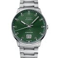 Часы MIDO Commander Big Date (артикул M021.626.11.091.00) — элегантная модель, сочетающая современный дизайн и швейцарское качество. Корпус диаметром 42 мм выполнен из нержавеющей стали с водозащитой до 5 бар (50 метров). Зелёный циферблат с сатинированной отделкой «солнечные лучи» дополнен крупным окошком даты в положении «6 часов» и защищён сапфировым стекломСапфировое стеклоПрочный и надёжный материал из кристалла сапфира синтетического происхождения, характеризующийся особой твёрдостью и устойчивостью к царапинам и повреждениям..
