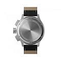 Мужские кварцевые часы — это стильный и функциональный аксессуар с хронографом. Корпус диаметром 44 мм выполнен из нержавеющей стали 316L с IP-покрытиемIP-покрытиеМетод ионного напыления. Демонстрирует повышенную устойчивость к истиранию, окислению и химическим веществам. Под воздействием высокого давления и температуры около 1500°C молекулы металла надёжно соединяются с частицами корпуса часов., включая безельБезельВнешний ободок, закрепляющий стекло. В спортивных часах так называется поворотное кольцо с делениями на циферблате, выполняет роль таймера – замеряет отрезки времени на шкале. Неподвижный безель – элемент декора. Однонаправленно вращающийся безель на дайверских часах позволяет фиксировать моменты погружения и выныривания на поверхность., кнопки и заводную головку. Циферблат чёрного цвета оформлен индексами и стрелками. Стрелки и метки с люминесцентным покрытиемЛюминесцентное покрытиеПозволяет считывать показания времени в темноте. Производители наносят на стрелки, часовые индексы, безель или поверхность циферблата светонакопительный состав, дающий холодное свечение. Super-LumiNova, обеспечивающим хорошую читаемость в темноте. Циферблат защищён сапфировым стекломСапфировое стеклоПрочный и надёжный материал из кристалла сапфира синтетического происхождения, характеризующийся особой твёрдостью и устойчивостью к царапинам и повреждениям.. Механизм — швейцарский кварцевый калибр Ronda 3520.D с функциями хронографаХронографФункция позволяет измерять отрезки времени с особой точностью: часы, минуты, секунды. Верным признаком хронографа является наличие на циферблате 3 дополнительных окошек-счётчиков. и секундомераСекундомерСекундоме́р — прибор, способный измерять интервалы времени с точностью до долей секунды.. Часы оснащены кожаным ремешком чёрного цвета с классической пряжкой. Водонепроницаемость 100 м позволяет использовать часы для плавания и повседневного ношения. Идеальный выбор для тех, кто ценит точность, качество и выразительный дизайн.