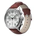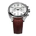 Мужские кварцевые часы — это стильный и функциональный аксессуар. Корпус диаметром 42 мм выполнен из нержавеющей стали 316L с зеркальной полировкой. Циферблат белого цвета оформлен индексами и стрелками с люминесцентным покрытиемЛюминесцентное покрытиеПозволяет считывать показания времени в темноте. Производители наносят на стрелки, часовые индексы, безель или поверхность циферблата светонакопительный состав, дающий холодное свечение.. Окошко даты расположено в положении 6 часов. Циферблат защищён сапфировым стекломСапфировое стеклоПрочный и надёжный материал из кристалла сапфира синтетического происхождения, характеризующийся особой твёрдостью и устойчивостью к царапинам и повреждениям.. Механизм — японский кварцевый калибр Miyota 6S21 с функцией хронографаХронографФункция позволяет измерять отрезки времени с особой точностью: часы, минуты, секунды. Верным признаком хронографа является наличие на циферблате 3 дополнительных окошек-счётчиков.. Часы оснащены кожаным ремешком коричневого цвета с текстурой под аллигатора и стандартной застёжкой. Водонепроницаемость 100 м позволяет использовать часы для плавания и повседневного ношения. Идеальный выбор для тех, кто ценит точность, качество и выразительный дизайн.