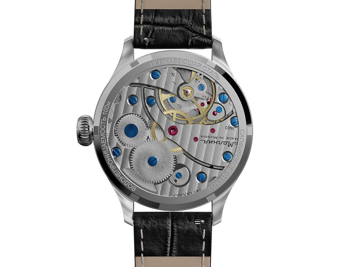 Мужские механические часы с ручным подзаводом — это аксессуар от легендарного бренда «МОЛНИЯ», созданный на Челябинском часовом заводе. Корпус диаметром 41 мм и толщиной 12 мм выполнен из нержавеющей стали 316L с зеркальной полировкой. БезельБезельВнешний ободок, закрепляющий стекло. В спортивных часах так называется поворотное кольцо с делениями на циферблате, выполняет роль таймера – замеряет отрезки времени на шкале. Неподвижный безель – элемент декора. Однонаправленно вращающийся безель на дайверских часах позволяет фиксировать моменты погружения и выныривания на поверхность. также выполнен из стали с зеркальной отделкой. Циферблат белого цвета оформлен римскими цифрами и стальными индексами. Малая секундная стрелка вынесена на позицию 9 часов. Циферблат защищён сапфировым стекломСапфировое стеклоПрочный и надёжный материал из кристалла сапфира синтетического происхождения, характеризующийся особой твёрдостью и устойчивостью к царапинам и повреждениям. толщиной 2,5 мм. Механизм — мануфактурный калибр 3603, собранный вручную, с запасом хода до 40 часов. Прозрачная задняя крышка позволяет наблюдать за работой механизма. Часы оснащены чёрным кожаным ремешком шириной 20 мм с раскладной застёжкойРаскладная застёжкаТакой тип застёжки используется только на браслетах из металла. Она никогда не раскрывается полностью, происходит разделение на 2 и более частей. Раскладывающая застёжка снизит вероятность потери часов к минимуму. и системой быстрой замены. Водонепроницаемость 100 м позволяет использовать часы для плавания и повседневного ношения. Идеальный выбор для тех, кто ценит российское качество и традиции.