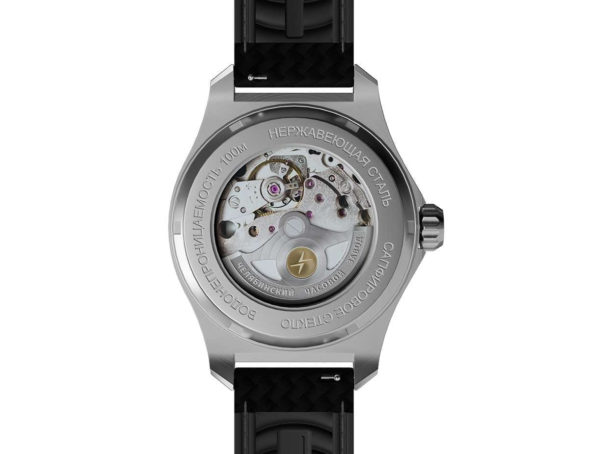 Мужские механические часы с автоподзаводом — это надёжный аксессуар от легендарного бренда «МОЛНИЯ», созданный на Челябинском часовом заводе. Корпус диаметром 42 мм выполнен из нержавеющей стали 316L с зеркальной полировкой. БезельБезельВнешний ободок, закрепляющий стекло. В спортивных часах так называется поворотное кольцо с делениями на циферблате, выполняет роль таймера – замеряет отрезки времени на шкале. Неподвижный безель – элемент декора. Однонаправленно вращающийся безель на дайверских часах позволяет фиксировать моменты погружения и выныривания на поверхность. также выполнен из стали с зеркальной отделкой. Циферблат чёрного цвета оформлен индексами и стрелками. Окошко даты расположено в положении 3 часов. Стрелки и метки с люминесцентным покрытиемЛюминесцентное покрытиеПозволяет считывать показания времени в темноте. Производители наносят на стрелки, часовые индексы, безель или поверхность циферблата светонакопительный состав, дающий холодное свечение. Super-LumiNova, обеспечивающим хорошую читаемость в темноте. Циферблат защищён сапфировым стекломСапфировое стеклоПрочный и надёжный материал из кристалла сапфира синтетического происхождения, характеризующийся особой твёрдостью и устойчивостью к царапинам и повреждениям. с антибликовым покрытиемАнтибликовое покрытиеСлой оксида металла в 0,13-0,3 микрон, благодаря которому стекло часов не бликует и не отражает свет. Антибликовое покрытие уменьшает отражение света в 10 раз, обеспечивая отличную читаемость показателей циферблата.. Механизм — японский автоматический калибр Miyota 8215 с функцией и запасом хода до 42 часов. Прозрачная задняя крышка позволяет наблюдать за работой механизма с кастомным ротором. Часы оснащены кожаным ремешком чёрного цвета с подкладкой из фтористого каучука и классической пряжкой, а также системой быстрой замены. Водонепроницаемость 100 м позволяет использовать часы для плавания и повседневного ношения. Идеальный выбор для тех, кто ценит качество, точность и стиль.