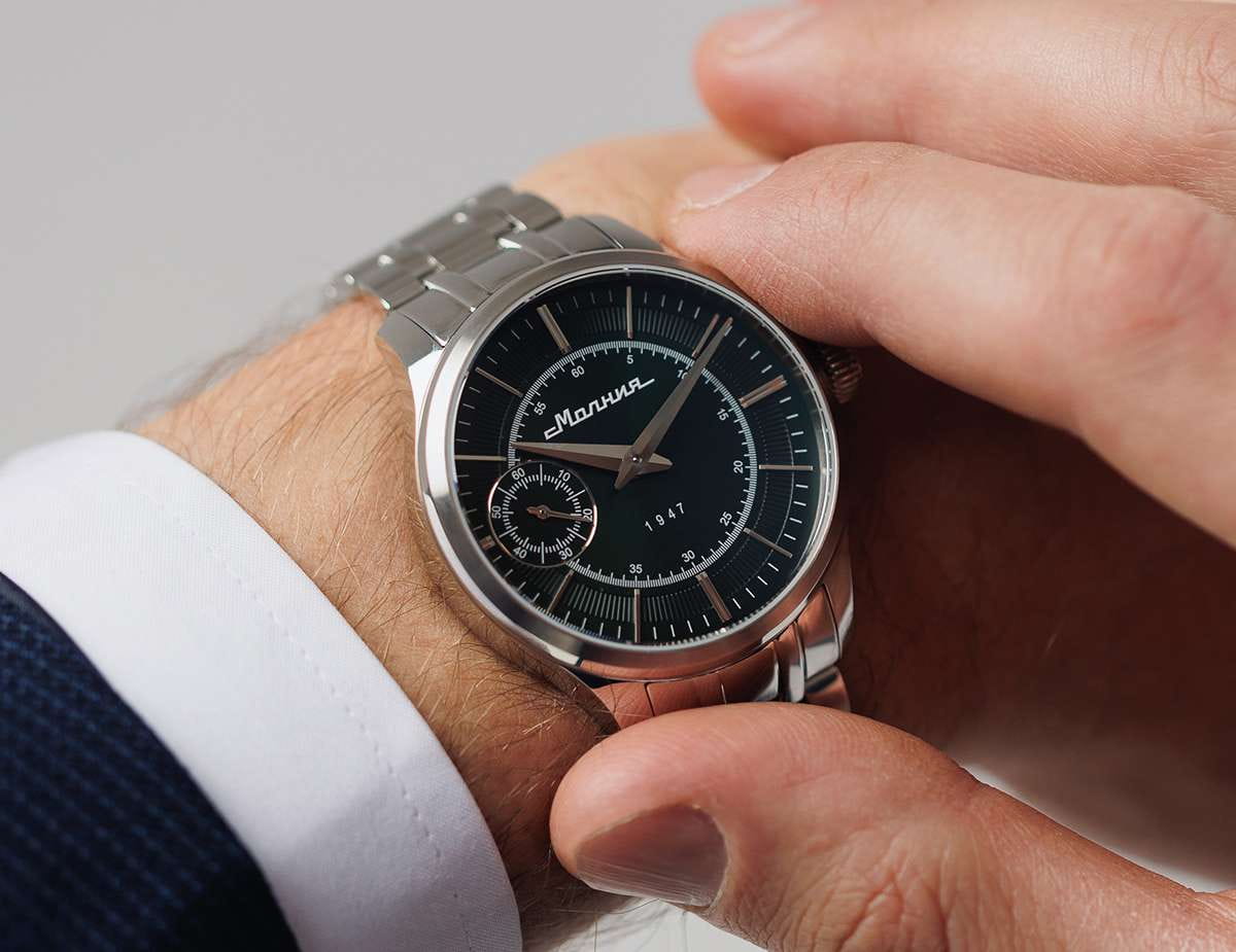 Мужские механические часы с ручным подзаводом — это аксессуар от легендарного бренда «МОЛНИЯ», созданный на Челябинском часовом заводе. Корпус диаметром 41 мм выполнен из нержавеющей стали 316L с зеркальной полировкой. БезельБезельВнешний ободок, закрепляющий стекло. В спортивных часах так называется поворотное кольцо с делениями на циферблате, выполняет роль таймера – замеряет отрезки времени на шкале. Неподвижный безель – элемент декора. Однонаправленно вращающийся безель на дайверских часах позволяет фиксировать моменты погружения и выныривания на поверхность. также выполнен из стали с зеркальной отделкой. Циферблат зелёного цвета оформлен индексами и стрелками. Малая секундная стрелка вынесена на позицию 9 часов. Циферблат защищён сапфировым стекломСапфировое стеклоПрочный и надёжный материал из кристалла сапфира синтетического происхождения, характеризующийся особой твёрдостью и устойчивостью к царапинам и повреждениям. толщиной 2 мм. Механизм — мануфактурный калибр 3603, собранный вручную, с запасом хода до 40 часов. Прозрачная задняя крышка позволяет наблюдать за работой механизма. Часы оснащены стальным браслетом с раскладной застёжкойРаскладная застёжкаТакой тип застёжки используется только на браслетах из металла. Она никогда не раскрывается полностью, происходит разделение на 2 и более частей. Раскладывающая застёжка снизит вероятность потери часов к минимуму. с кнопочным открытием и системой быстрой замены. Водонепроницаемость 50 м позволяет использовать часы в повседневных условиях. Идеальный выбор для тех, кто ценит российское качество и традиции.
