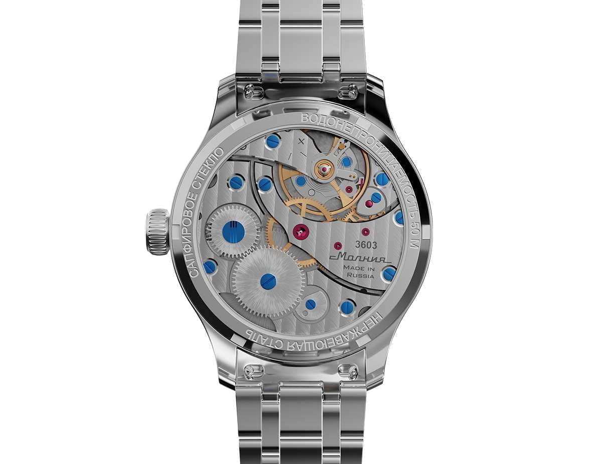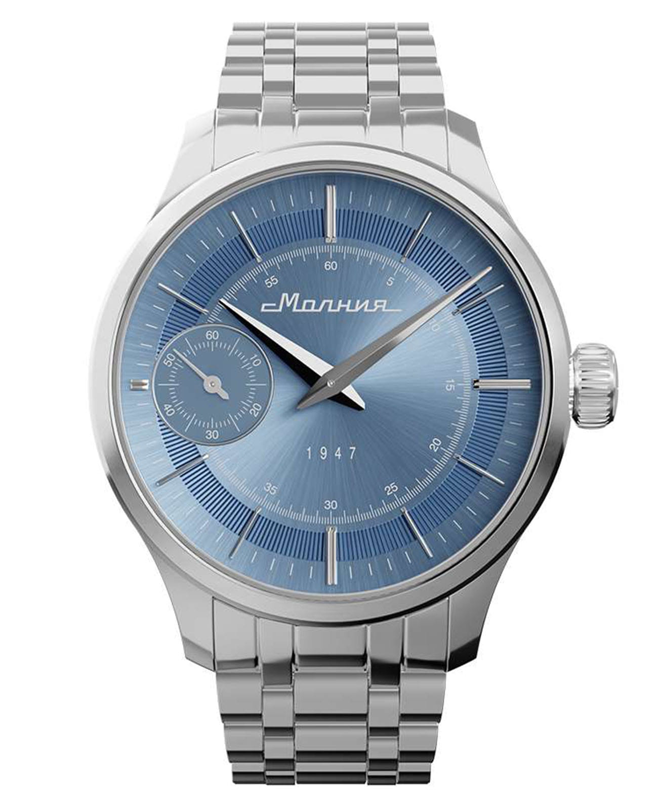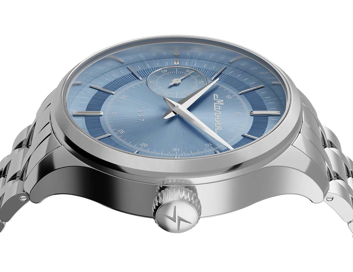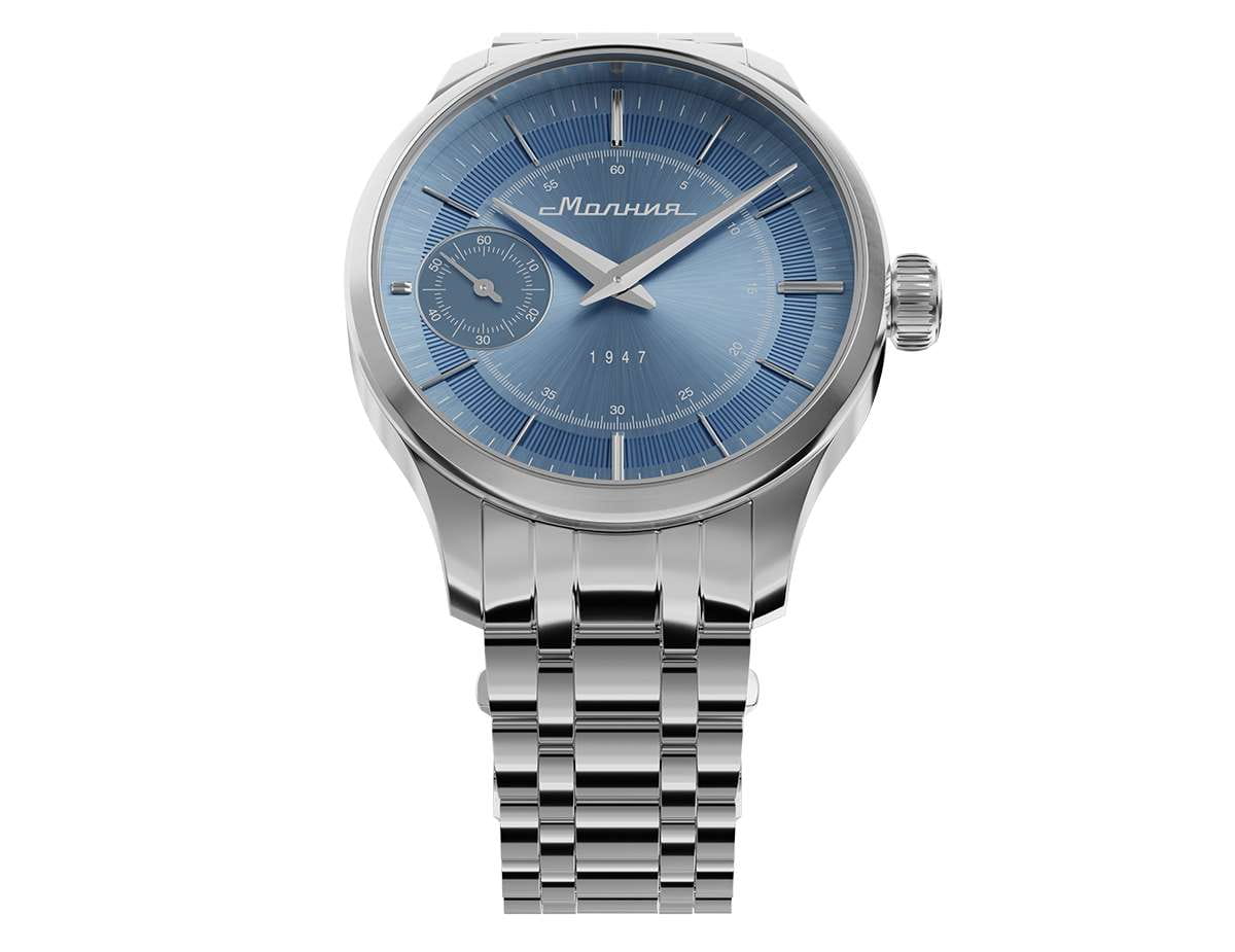 Мужские механические часы с ручным подзаводом — это аксессуар от легендарного бренда «МОЛНИЯ», созданный на Челябинском часовом заводе. Корпус диаметром 41 мм выполнен из нержавеющей стали 316L с зеркальной полировкой. БезельБезельВнешний ободок, закрепляющий стекло. В спортивных часах так называется поворотное кольцо с делениями на циферблате, выполняет роль таймера – замеряет отрезки времени на шкале. Неподвижный безель – элемент декора. Однонаправленно вращающийся безель на дайверских часах позволяет фиксировать моменты погружения и выныривания на поверхность. также выполнен из стали с зеркальной отделкой. Циферблат голубого цвета оформлен индексами и стрелками. Малая секундная стрелка вынесена на позицию 9 часов. Циферблат защищён сапфировым стекломСапфировое стеклоПрочный и надёжный материал из кристалла сапфира синтетического происхождения, характеризующийся особой твёрдостью и устойчивостью к царапинам и повреждениям. толщиной 2 мм. Механизм — мануфактурный калибр 3603, собранный вручную, с запасом хода до 40 часов. Прозрачная задняя крышка позволяет наблюдать за работой механизма. Часы оснащены стальным браслетом с раскладной застёжкойРаскладная застёжкаТакой тип застёжки используется только на браслетах из металла. Она никогда не раскрывается полностью, происходит разделение на 2 и более частей. Раскладывающая застёжка снизит вероятность потери часов к минимуму. с кнопочным открытием и системой быстрой замены. Водонепроницаемость 50 м позволяет использовать часы в повседневных условиях. Идеальный выбор для тех, кто ценит российское качество и традиции.