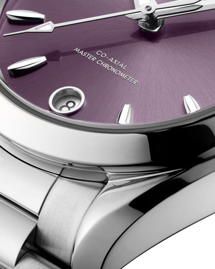 Omega Seamaster Aqua Terra выполнены в симметричном корпусе из полированной нержавеющей стали с завинчивающейся задней крышкой, украшенной волновым узором. Циферблат изготовлен из латуни и обработан методом солнечной шлифовки от центра к краям. Циферблат дополнен окошком даты на 6 часах, стрелками и метками из 18K белого золота с алмазной полировкой для высокой контрастности и читаемости. Логотип OMEGA также выполнен в этом же материале. Калибр Omega 8800 сертифицирован как Master Chronometer — гарантия высочайшей точности и устойчивости к магнитным полям. Запас хода составляет 55 часов. Защиту циферблата обеспечивает сапфировое стеклоСапфировое стеклоПрочный и надёжный материал из кристалла сапфира синтетического происхождения, характеризующийся особой твёрдостью и устойчивостью к царапинам и повреждениям. с антибликовым покрытиемАнтибликовое покрытиеСлой оксида металла в 0,13-0,3 микрон, благодаря которому стекло часов не бликует и не отражает свет. Антибликовое покрытие уменьшает отражение света в 10 раз, обеспечивая отличную читаемость показателей циферблата. с обеих сторон. Водозащита позволяет использовать часы в воде без риска повреждения. Часы установлены на браслет со скруглёнными звеньями и раскладной застёжкойРаскладная застёжкаТакой тип застёжки используется только на браслетах из металла. Она никогда не раскрывается полностью, происходит разделение на 2 и более частей. Раскладывающая застёжка снизит вероятность потери часов к минимуму.. Это сочетание премиального качества, технологичности и классического дизайна.
