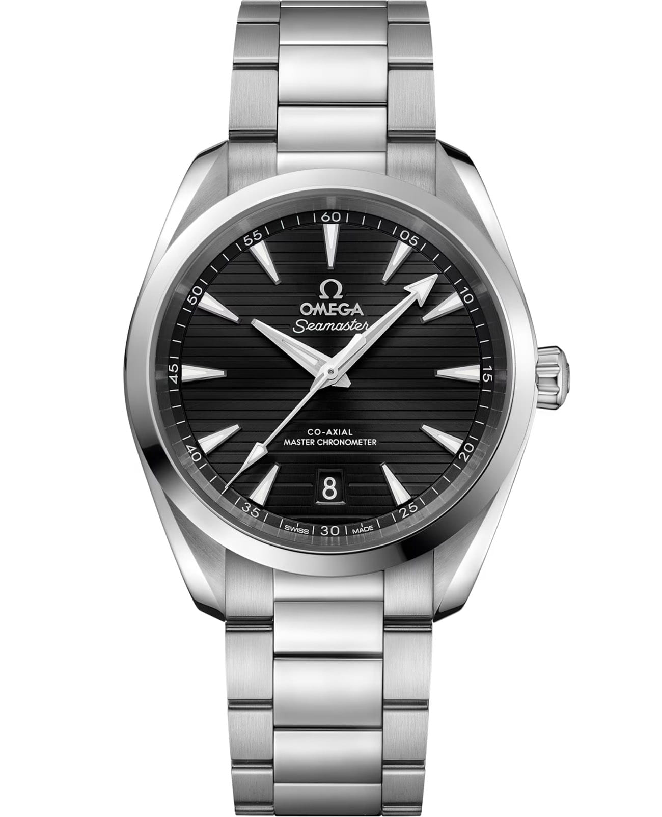 Omega Seamaster Aqua Terra выполнены в симметричном корпусе из нержавеющей стали с завинчивающейся задней крышкой, украшенной волновым узором. Циферблат дополнен окошком даты на 6 часах и оформлен горизонтальным рисунком, вдохновлённым текстурой тикового дерева палуб яхт. Стрелки и метки оснащены люминесцентным покрытиемЛюминесцентное покрытиеПозволяет считывать показания времени в темноте. Производители наносят на стрелки, часовые индексы, безель или поверхность циферблата светонакопительный состав, дающий холодное свечение. Super-LumiNova для лучшей читаемости в темноте. Калибр Omega 8800 сертифицирован как Master Chronometer — гарантия высочайшей точности и устойчивости к магнитным полям. Запас хода составляет 55 часов. Защиту циферблата обеспечивает сапфировое стеклоСапфировое стеклоПрочный и надёжный материал из кристалла сапфира синтетического происхождения, характеризующийся особой твёрдостью и устойчивостью к царапинам и повреждениям. с антибликовым покрытиемАнтибликовое покрытиеСлой оксида металла в 0,13-0,3 микрон, благодаря которому стекло часов не бликует и не отражает свет. Антибликовое покрытие уменьшает отражение света в 10 раз, обеспечивая отличную читаемость показателей циферблата. с обеих сторон. Водозащита позволяет использовать часы в воде без риска повреждения. Часы установлены на полированный и матовый браслет. Это сочетание премиального качества, технологичности и классического дизайна.