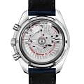 Speedmaster Moonphase воплощает космическое наследие OMEGA, представив уникальную модель с двумя невероятно детализированными изображениями Луны. 44,25-мм корпус из нержавеющей стали с синим керамическим безелемБезельВнешний ободок, закрепляющий стекло. В спортивных часах так называется поворотное кольцо с делениями на циферблате, выполняет роль таймера – замеряет отрезки времени на шкале. Неподвижный безель – элемент декора. Однонаправленно вращающийся безель на дайверских часах позволяет фиксировать моменты погружения и выныривания на поверхность., украшенным тахиметрической шкалойТахиметрРазмеченная шкала, располагается на ободке или безеле часов. Тахиметр позволяет рассчитать скорость на определённом участке пути, расстояние измеряется в километрах или милях. из Liquidmetal™, сочетается с синим кожаным ремешком и полированной застежкой. Синий циферблат с радиальным сатинированием и индексами с родиевым покрытием дополнен уникальным указателем фаз Луны на "6 часах", где лунный диск из металлизированного хрусталя с микроструктурой поражает реалистичностью. Прецизионный механизм OMEGA Co-Axial Master Chronometer 9904 с сертификатом METAS продолжает традиции космической точности.
