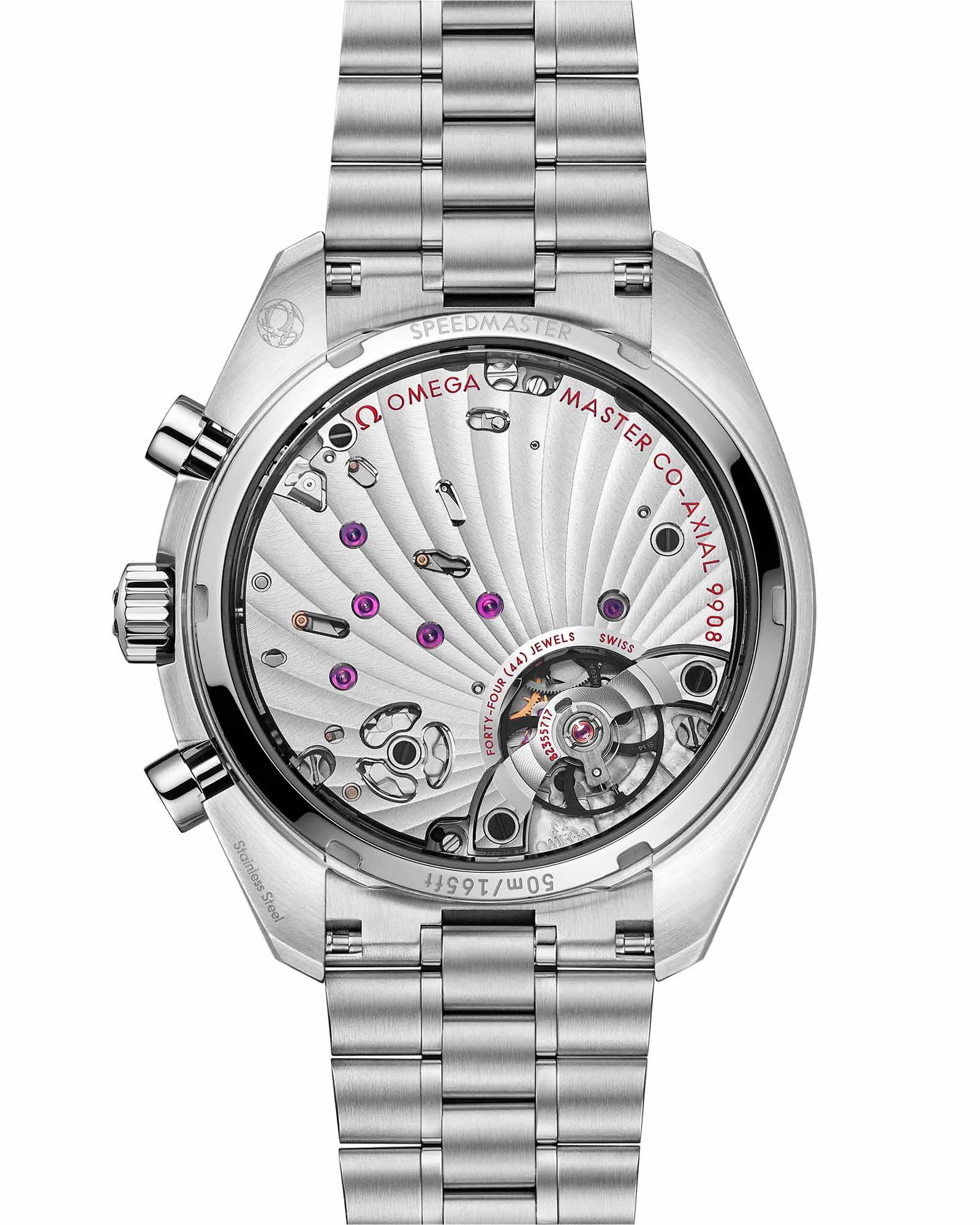 Chronoscope воплощает дух винтажных хронографов OMEGA 1940-х, мастерски переосмысленный через призму легендарного Speedmaster. 43-мм корпус из нержавеющей стали с синим безелемБезельВнешний ободок, закрепляющий стекло. В спортивных часах так называется поворотное кольцо с делениями на циферблате, выполняет роль таймера – замеряет отрезки времени на шкале. Неподвижный безель – элемент декора. Однонаправленно вращающийся безель на дайверских часах позволяет фиксировать моменты погружения и выныривания на поверхность. из анодированного алюминия представляет серебристый циферблат, украшенный тахиметрической шкалойТахиметрРазмеченная шкала, располагается на ободке или безеле часов. Тахиметр позволяет рассчитать скорость на определённом участке пути, расстояние измеряется в километрах или милях. и спиралевидным узором. Синие стрелки в форме листьев и арабские цифры добавляют характерный ретро-акцент. Три исторические шкалы в форме улитки - тахиметрическая, пульсометрическая и телеметрическая - создают уникальный измерительный комплекс. Функциональные счетчики на 3 и 9 часах гармонично интегрированы в дизайн. Браслет из нержавеющей стали завершает образ, а калибр OMEGA Co-Axial Master Chronometer 9908 гарантирует прецизионную точность, соединяя наследие с инновациями.