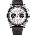 Chronoscope мастерски объединяет наследие винтажных хронографов OMEGA 1940-х с узнаваемой эстетикой Speedmaster. 43-мм корпус из нержавеющей стали с черным безелемБезельВнешний ободок, закрепляющий стекло. В спортивных часах так называется поворотное кольцо с делениями на циферблате, выполняет роль таймера – замеряет отрезки времени на шкале. Неподвижный безель – элемент декора. Однонаправленно вращающийся безель на дайверских часах позволяет фиксировать моменты погружения и выныривания на поверхность. из анодированного алюминия обрамляет серебристый циферблат, украшенный чернеными элементами и спиралевидным узором. Три исторические шкалы в форме улитки - тахиметрическаяТахиметрРазмеченная шкала, располагается на ободке или безеле часов. Тахиметр позволяет рассчитать скорость на определённом участке пути, расстояние измеряется в километрах или милях., пульсометрическая и телеметрическая - создают уникальный измерительный комплекс. Черненые стрелки в форме листьев и арабские цифры подчеркивают ретро-стиль. На позиции "9 часов" расположен счетчик малых секунд, а на "3 часах" - "60-минутный и 12-часовой счетчики" с контрастными красными стрелками. Часы дополнены черным перфорированным кожаным ремешком с эффектной красной подкладкой, а калибр OMEGA Co-Axial Master Chronometer 9908 гарантирует безупречную точность, соединяя традиции с современными технологиями.