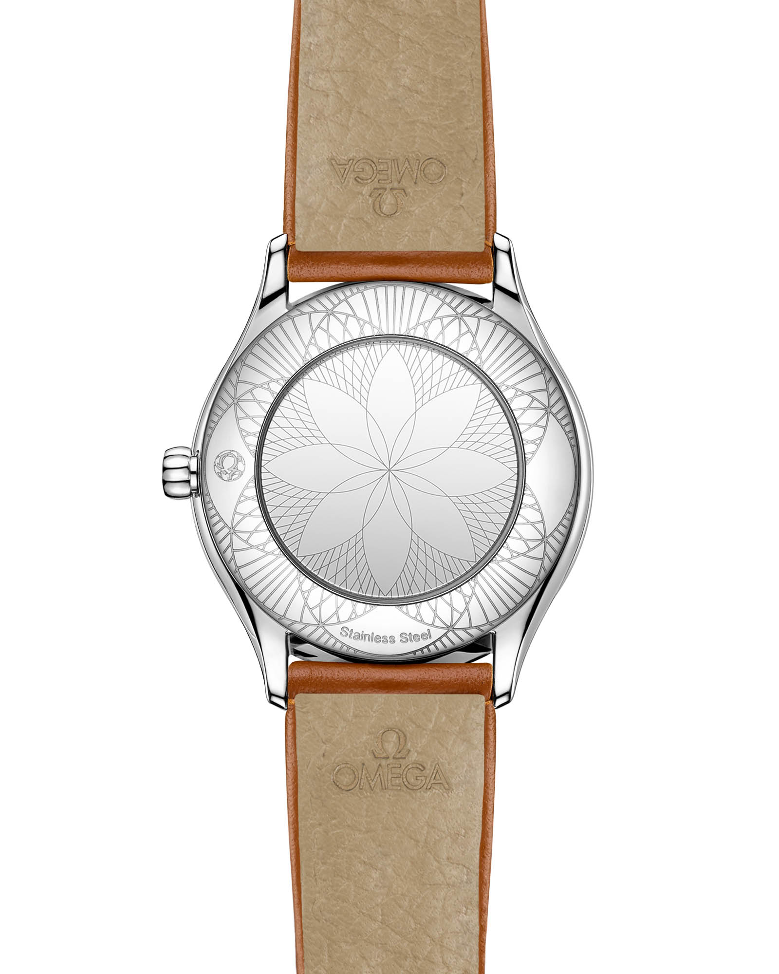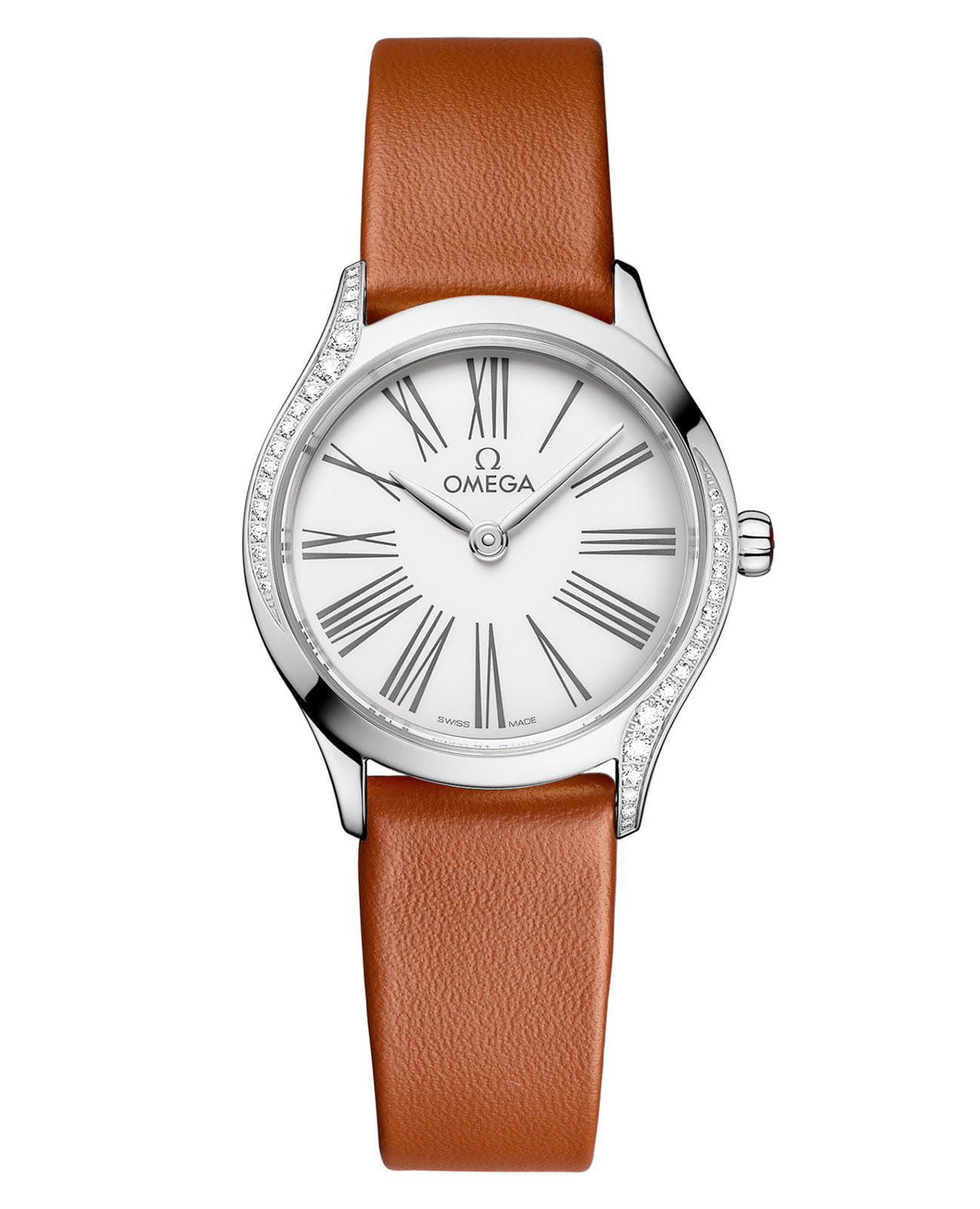 Mini Trésor – истинное воплощение женственности в коллекции OMEGA, где 26-мм корпус из нержавеющей стали украшен волнообразными рядами сверкающих бриллиантов, а заводная головка с алмазом в обрамлении красной гибридной керамики добавляет ноту игривого очарования. Куполообразный циферблат из белой эмали "Grand Feu" с сероватым оттенком и изящными римскими цифрами создает эффект воздушной легкости. Ремешок из кожи Novonappa золотистого цвета с фирменной застежкой Trésor подчеркивает роскошный характер модели. Внутри скрыт точный кварцевый механизм OMEGA 4061, дополненный зеркальной задней крышкой с металлизированным узором "Her Time" – идеальный баланс ювелирного искусства и часового мастерства.