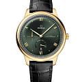 OMEGA De Ville Prestige третьего поколения — это воплощение вечной классики, где 41-мм корпус из 18-каратного желтого золота18-каратное золотоОбозначение по каратной системе пробирования, оно показывает, сколько драгоценного металла содержится в изделии. 18 карат - в составе 75% чистого золота, соответствует 750 пробе.