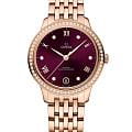 имеют инкрустированный бриллиантами безельБезельВнешний ободок, закрепляющий стекло. В спортивных часах так называется поворотное кольцо с делениями на циферблате, выполняет роль таймера – замеряет отрезки времени на шкале. Неподвижный безель – элемент декора. Однонаправленно вращающийся безель на дайверских часах позволяет фиксировать моменты погружения и выныривания на поверхность. и циферблат с PVD-покрытиемPVDУльтратонкое покрытие наносится в технике вакуумного напыления, сочетает в себе нитрид титана особой прочности со слоем золота или оксида хрома. Несёт в себе декоративную или защитную функцию. фиолетово-бордового цвета и радиальным сатинированием. На циферблате расположены стрелки с PVD-покрытиемPVDУльтратонкое покрытие наносится в технике вакуумного напыления, сочетает в себе нитрид титана особой прочности со слоем золота или оксида хрома. Несёт в себе декоративную или защитную функцию. цвета золота Sedna™18-каратное золотоОбозначение по каратной системе пробирования, оно показывает, сколько драгоценного металла содержится в изделии. 18 карат - в составе 75% чистого золота, соответствует 750 пробе.