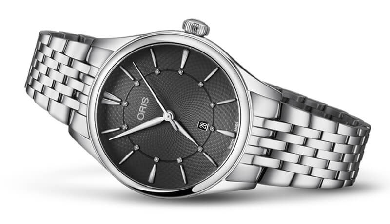 Oris 01 561 7722 4053-07 8 14 79 Artelier – это элегантные часы, сочетающие в себе классический дизайн и современную функциональность. Корпус из нержавеющей стали диаметром 28 мм идеально подходит для тех, кто ценит утонченность и стиль. Сапфировое стеклоСапфировое стеклоПрочный и надёжный материал из кристалла сапфира синтетического происхождения, характеризующийся особой твёрдостью и устойчивостью к царапинам и повреждениям. с антибликовым покрытием защищает циферблат от царапин и обеспечивает отличную читаемость при любом освещении. Стальной браслет на застёжке-бабочке с кнопкамиЗастёжка "бабочка"Такой вид застёжки дополняется предохранителями, помогающими избежать случайного раскрытия браслета. Обладают изящным исполнением. идеально дополняет дизайн часов, обеспечивая комфортное ношение. Часы оснащены центральной секундной стрелкой и окошком даты в положении «6 часов», что делает их функциональными для повседневного использования. Часы обладают водонепроницаемостью в 5 бар (50 метров). Каждая из этих функций прекрасно отображается на потрясающем циферблате, украшенном накладными индексами, гладкими стрелками из нержавеющей стали с бриллиантами 0,0152 карата, установленными в маркерах, и легендарным логотипом Oris.