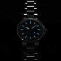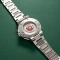 Многокомпонентный корпус из нержавеющей стали, вращающийся безельБезельВнешний ободок, закрепляющий стекло. В спортивных часах так называется поворотное кольцо с делениями на циферблате, выполняет роль таймера – замеряет отрезки времени на шкале. Неподвижный безель – элемент декора. Однонаправленно вращающийся безель на дайверских часах позволяет фиксировать моменты погружения и выныривания на поверхность. с минутной шкалой. Сапфировое стеклоСапфировое стеклоПрочный и надёжный материал из кристалла сапфира синтетического происхождения, характеризующийся особой твёрдостью и устойчивостью к царапинам и повреждениям., выпуклое с обеих сторон, внутреннее антибликовое покрытие. Прозрачная задняя крышка из минерального стеклаМинеральное стеклоМинеральное стекло представляет собой искусственно выращенный минерал кварца. Такое стекло отличается особой устойчивостью к повреждениям и царапинам. Уступает по некоторым качествам сапфировому стеклу.. Стрелки и метки с люминесцентным покрытиемЛюминесцентное покрытиеПозволяет считывать показания времени в темноте. Производители наносят на стрелки, часовые индексы, безель или поверхность циферблата светонакопительный состав, дающий холодное свечение.. Завинчивающаяся заводная головка.