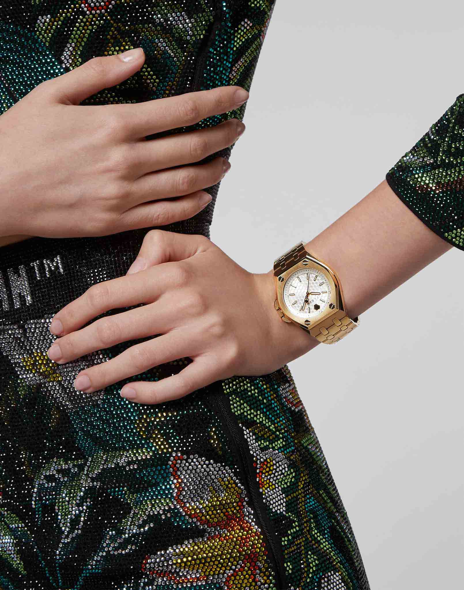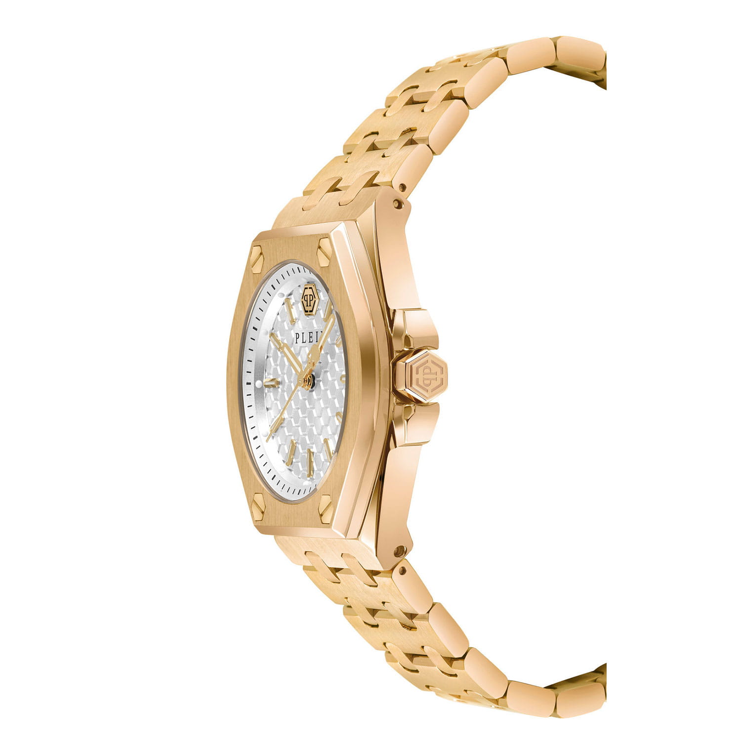 Женские немецкие кварцевые часы Philipp Plein Extreme Lady PWJAA0722, кварцевый механизм с высокой точностью. Класс водозащиты: 50 метров, позволит защитить корпус от случайных брызг или капель дождя. Корпус часов изготовлен из стали с IP-покрытиемIP-покрытиеМетод ионного напыления. Демонстрирует повышенную устойчивость к истиранию, окислению и химическим веществам. Под воздействием высокого давления и температуры около 1500°C молекулы металла надёжно соединяются с частицами корпуса часов. цвета желтое золото. Прочное минеральное стеклоМинеральное стеклоМинеральное стекло представляет собой искусственно выращенный минерал кварца. Такое стекло отличается особой устойчивостью к повреждениям и царапинам. Уступает по некоторым качествам сапфировому стеклу. устойчивое к мелким механическим повреждениям. Стальной браслет с IP-покрытиемIP-покрытиеМетод ионного напыления. Демонстрирует повышенную устойчивость к истиранию, окислению и химическим веществам. Под воздействием высокого давления и температуры около 1500°C молекулы металла надёжно соединяются с частицами корпуса часов. цвета желтое золота шириной 23 мм, раскладная застёжкаРаскладная застёжкаТакой тип застёжки используется только на браслетах из металла. Она никогда не раскрывается полностью, происходит разделение на 2 и более частей. Раскладывающая застёжка снизит вероятность потери часов к минимуму..