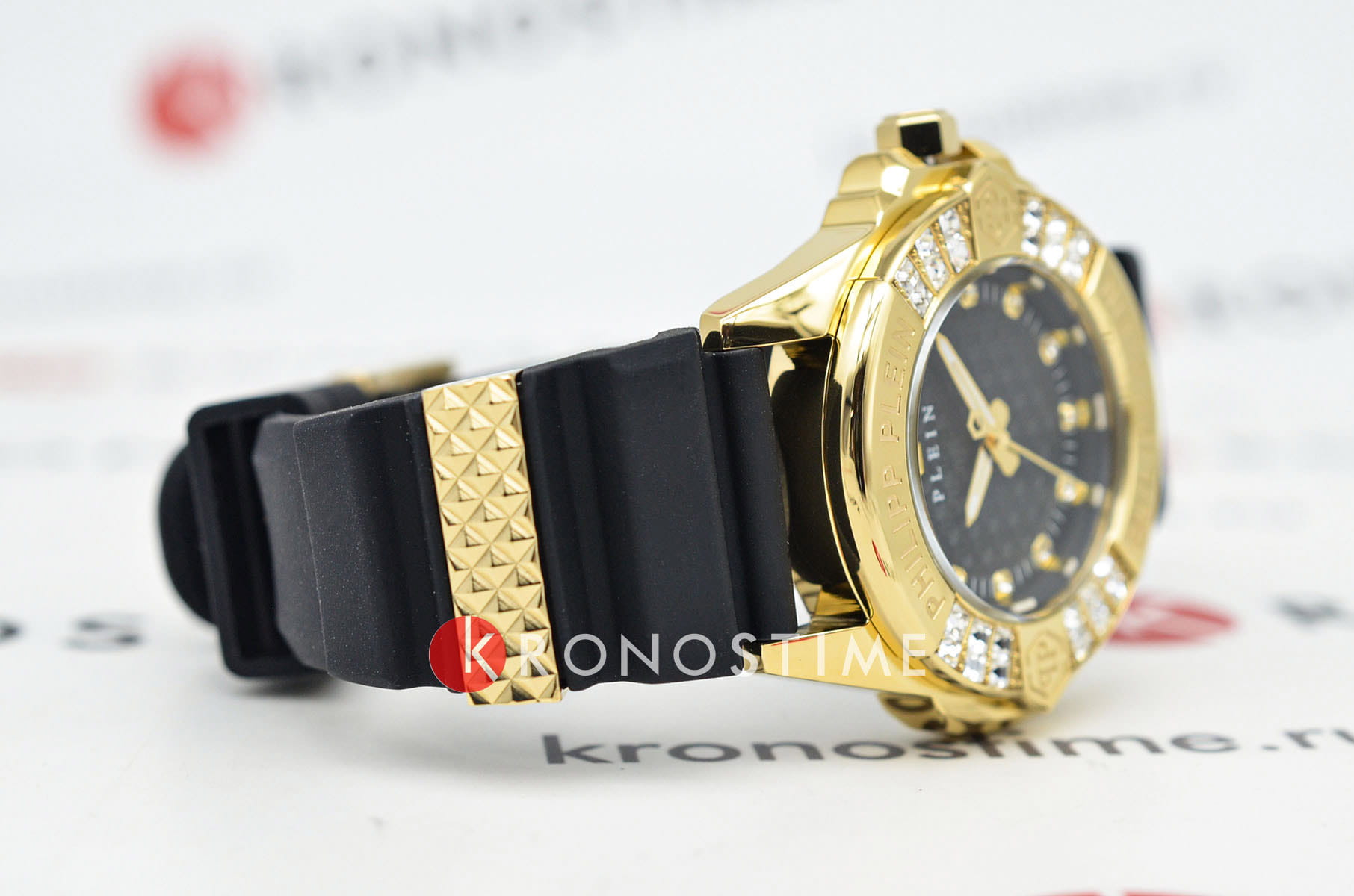 Philipp Plein Plein Majesty PWOFA0225 - дерзкое заявление любви к роскоши и бунтарскому стилю. Диаметр круглого корпуса из прочной нержавеющей стали с PVD-покрытиемPVDУльтратонкое покрытие наносится в технике вакуумного напыления, сочетает в себе нитрид титана особой прочности со слоем золота или оксида хрома. Несёт в себе декоративную или защитную функцию. равен 38 мм. Силиконовый ремешок на стандартной застёжке обеспечивает надёжную фиксацию и комфортное ношение. Метки в виде кристаллов Preciosa. Минеральное стеклоМинеральное стеклоМинеральное стекло представляет собой искусственно выращенный минерал кварца. Такое стекло отличается особой устойчивостью к повреждениям и царапинам. Уступает по некоторым качествам сапфировому стеклу. защищает циферблат от царапин. Люминесцентное покрытиеЛюминесцентное покрытиеПозволяет считывать показания времени в темноте. Производители наносят на стрелки, часовые индексы, безель или поверхность циферблата светонакопительный состав, дающий холодное свечение. стрелок и меток позволит следить за временем даже в полной темноте. БезельБезельВнешний ободок, закрепляющий стекло. В спортивных часах так называется поворотное кольцо с делениями на циферблате, выполняет роль таймера – замеряет отрезки времени на шкале. Неподвижный безель – элемент декора. Однонаправленно вращающийся безель на дайверских часах позволяет фиксировать моменты погружения и выныривания на поверхность. инкрустирован кристаллами. Влагозащита: 50 метров, позволит защитить корпус от случайных брызг или капель дождя. Идеальный аксессуар для тех, кто ценит индивидуальность и не боится выделяться из толпы.