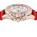 Philipp Plein Plein Majesty PWOFA0325 - дерзкое заявление любви к роскоши и бунтарскому стилю. Диаметр круглого корпуса из прочной нержавеющей стали с PVD-покрытиемPVDУльтратонкое покрытие наносится в технике вакуумного напыления, сочетает в себе нитрид титана особой прочности со слоем золота или оксида хрома. Несёт в себе декоративную или защитную функцию. равен 38 мм. Силиконовый ремешок на стандартной застёжке обеспечивает надёжную фиксацию и комфортное ношение. Метки в виде кристаллов Preciosa. Минеральное стеклоМинеральное стеклоМинеральное стекло представляет собой искусственно выращенный минерал кварца. Такое стекло отличается особой устойчивостью к повреждениям и царапинам. Уступает по некоторым качествам сапфировому стеклу. защищает циферблат от царапин. Люминесцентное покрытиеЛюминесцентное покрытиеПозволяет считывать показания времени в темноте. Производители наносят на стрелки, часовые индексы, безель или поверхность циферблата светонакопительный состав, дающий холодное свечение. стрелок и меток позволит следить за временем даже в полной темноте. БезельБезельВнешний ободок, закрепляющий стекло. В спортивных часах так называется поворотное кольцо с делениями на циферблате, выполняет роль таймера – замеряет отрезки времени на шкале. Неподвижный безель – элемент декора. Однонаправленно вращающийся безель на дайверских часах позволяет фиксировать моменты погружения и выныривания на поверхность. инкрустирован кристаллами. Влагозащита: 50 метров, позволит защитить корпус от случайных брызг или капель дождя. Идеальный аксессуар для тех, кто ценит индивидуальность и не боится выделяться из толпы.