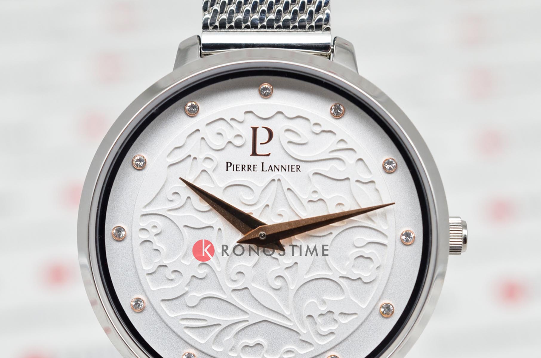 Стильный циферблат, украшенный объемным рисунком, придает нежности и уникальности этим женским часам