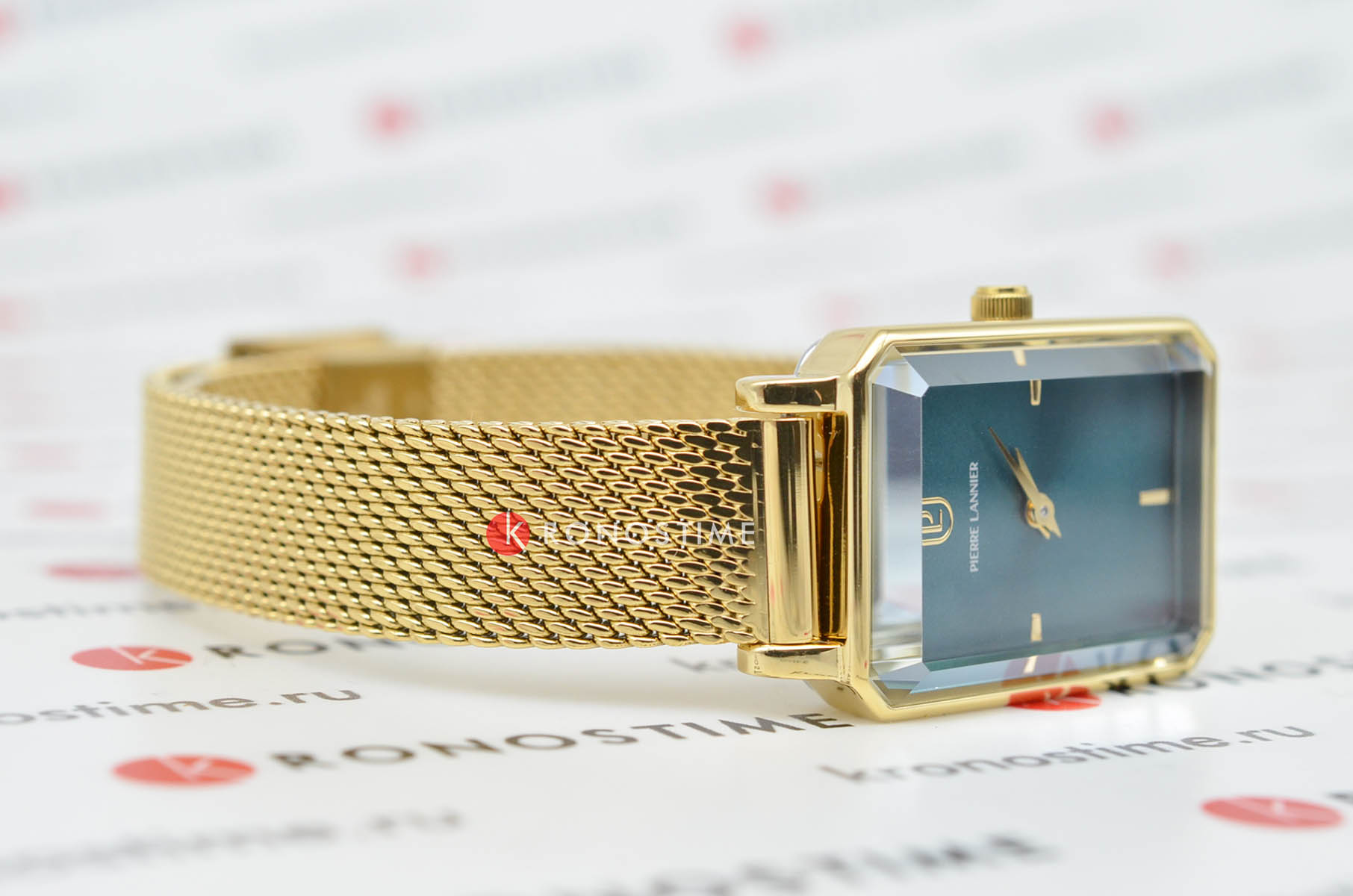 Женские кварцевые часы Pierre Lannier 006L572 — это стильный аксессуар, сочетающий элегантность французского дизайна с надёжностью и функциональностью. Корпус прямоугольной формы изготовлен из нержавеющей стали с IP-покрытиемIP-покрытиеМетод ионного напыления. Демонстрирует повышенную устойчивость к истиранию, окислению и химическим веществам. Под воздействием высокого давления и температуры около 1500°C молекулы металла надёжно соединяются с частицами корпуса часов. цвета желтого золота, что придаёт ему благородный внешний вид и устойчивость к царапинам. Его размеры — 21x28,4 мм, а толщина — 7,8 мм, что делает модель удобной для повседневного ношения. Циферблат зелёного цвета дополнен центральными стрелками, а защиту механизма обеспечивает минеральное стеклоМинеральное стеклоМинеральное стекло представляет собой искусственно выращенный минерал кварца. Такое стекло отличается особой устойчивостью к повреждениям и царапинам. Уступает по некоторым качествам сапфировому стеклу., устойчивое к мелким повреждениям. Браслет выполнен в технике миланского плетения из стали с покрытием и оснащён Раскладная застёжкаРаскладная застёжкаТакой тип застёжки используется только на браслетах из металла. Она никогда не раскрывается полностью, происходит разделение на 2 и более частей. Раскладывающая застёжка снизит вероятность потери часов к минимуму., что делает его удобным и практичным. Часы водонепроницаемы до 30 метров (, что позволяет использовать их в повседневных условиях — при мытье рук или под лёгким дождём. Гарантия 2 года подтверждает качество и долговечность изделия. Эти часы станут универсальным аксессуаром для тех, кто ценит сочетание стиля, функциональности и французского качества — идеальный выбор для повседневной носки и торжественных случаев.