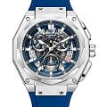 Мужские кварцевые часы Quantum HNG1097.359 из коллекции Hunter — круглый корпус размером 47 мм из нержавеющей стали, оснащённый функциями хронографаХронографФункция позволяет измерять отрезки времени с особой точностью: часы, минуты, секунды. Верным признаком хронографа является наличие на циферблате 3 дополнительных окошек-счётчиков. и окошком даты. Стрелки и метки с люминесцентным покрытиемЛюминесцентное покрытиеПозволяет считывать показания времени в темноте. Производители наносят на стрелки, часовые индексы, безель или поверхность циферблата светонакопительный состав, дающий холодное свечение.. Стекло — минеральноеМинеральное стеклоМинеральное стекло представляет собой искусственно выращенный минерал кварца. Такое стекло отличается особой устойчивостью к повреждениям и царапинам. Уступает по некоторым качествам сапфировому стеклу. с антибликовым покрытием. Механизм — японский кварцевый Seiko. Водонепроницаемость 100 м. Ремешок — синий силиконовый на стандартной застёжке. Идеальный выбор для тех, кто ценит турецкий дизайн и функциональный спортивный стиль.