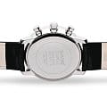 Серебристый циферблат имеет оригинальное исполнение функциональных счётчиков, модель станет запоминающейся деталью образа. Премиальный хронографХронографФункция позволяет измерять отрезки времени с особой точностью: часы, минуты, секунды. Верным признаком хронографа является наличие на циферблате 3 дополнительных окошек-счётчиков. измеряет время с отменной точностью, что осуществляется благодаря кварцевому швейцарскому калибру ETA E57.251. Сапфировое стекло с антибликовой поверхностью. Чёрный ремешок из натуральной кожи с имитацией рисунка кожи крокодила. Надёжный корпус из хирургической стали 316L. Водонепроницаемость 50 метров. препятствует случайному расстёгиванию. Отображение даты, секундомер. Диаметр корпуса: 42 мм.