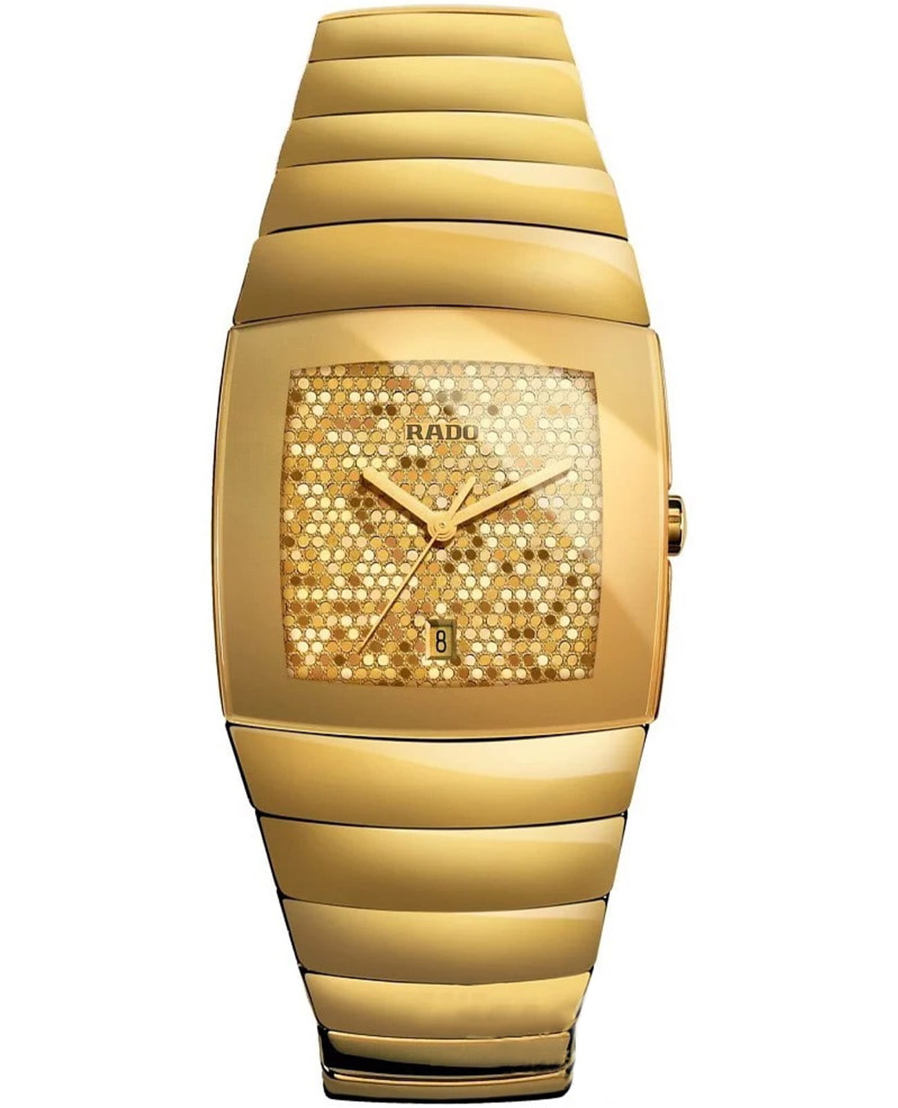 Часы Rado Sintra R13774252, произведение искусства и технологическое чудо, станут прекрасным дополнением к коллекции любого мужчины. Эти швейцарские часы оснащены кварцевым механизмом с указателем даты и тремя стрелками, заключенным в бочкообразный корпус из высокотехнологичной керамикиВысокотехнологичная керамикаИнновационный запатентованный Rado материал с гладкой или матовой поверхностью. Керамика за счёт кристаллической структуры обладает повышенной устойчивостью от возникновения царапин. Материал способен принимать температуру тела человека, обеспечивая невероятный комфорт при ношении.. Сапфировое стеклоСапфировое стеклоПрочный и надёжный материал из кристалла сапфира синтетического происхождения, характеризующийся особой твёрдостью и устойчивостью к царапинам и повреждениям. устойчивое к появлению царапин, обладающее высокой прозрачностью. Класс водозащиты: 30 метров, позволит защитить корпус от случайных брызг или капель дождя. Браслет из керамики на застёжке-бабочке с кнопкамиЗастёжка "бабочка"Такой вид застёжки дополняется предохранителями, помогающими избежать случайного раскрытия браслета. Обладают изящным исполнением. .