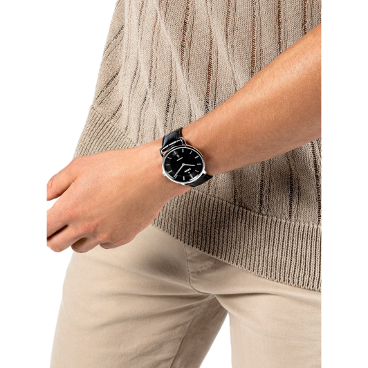 Несмотря на общее классическое исполнение, наручные часы выглядят ярко и эффектно, лучше всего гармонируя с брендовыми деловыми костюмами. Ультрапрочный корпус выполнен из инновационного материала Ceramos™CeramosМатериал являет собой инновационное сочетание высокотехнологичной керамики и сплава металла. Он объединяет керамическую устойчивость к царапинам и металлический роскошный блеск. , представляющий собой сплав керамики и металла. Внутри него находится автоматический механизм ETA A31.L01 с запасом хода до 64 часов. Ремешок из натуральной кожи. Сапфировое стеклоСапфировое стеклоПрочный и надёжный материал из кристалла сапфира синтетического происхождения, характеризующийся особой твёрдостью и устойчивостью к царапинам и повреждениям. с покрытием «антиблик». Кожаный ремешок с раскладной застёжкойРаскладная застёжкаТакой тип застёжки используется только на браслетах из металла. Она никогда не раскрывается полностью, происходит разделение на 2 и более частей. Раскладывающая застёжка снизит вероятность потери часов к минимуму.. Окошко даты на 6 часах. Диаметр корпуса: 40,7 мм.