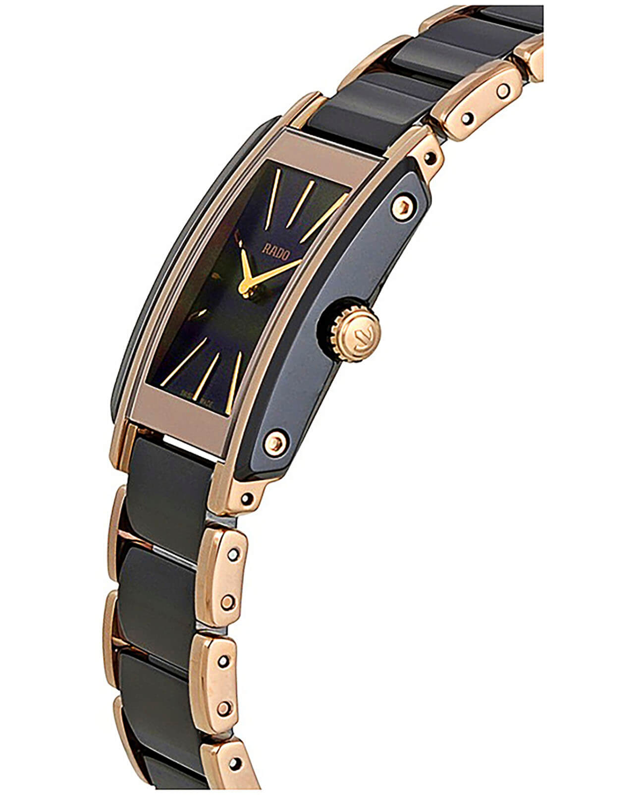 Лаконичный и сдержанный аксессуар точно понравится приверженцам классического стиля, минималистичный циферблат отличается удлинёнными часовыми индексами. Оригинально смотрится сочетание нержавеющей стали 316L и высокотехнологичной керамикиВысокотехнологичная керамикаИнновационный запатентованный Rado материал с гладкой или матовой поверхностью. Керамика за счёт кристаллической структуры обладает повышенной устойчивостью от возникновения царапин. Материал способен принимать температуру тела человека, обеспечивая невероятный комфорт при ношении.. Кварцевый механизм ETA 976.001 с высокой точностью хода. Стекло из сапфира. Водозащита 5 бар. PVD-покрытиеPVDУльтратонкое покрытие наносится в технике вакуумного напыления, сочетает в себе нитрид титана особой прочности со слоем золота или оксида хрома. Несёт в себе декоративную или защитную функцию. золотистого цвета, устойчивое к истиранию. Габариты: 33 x 23 x 6,5 мм.