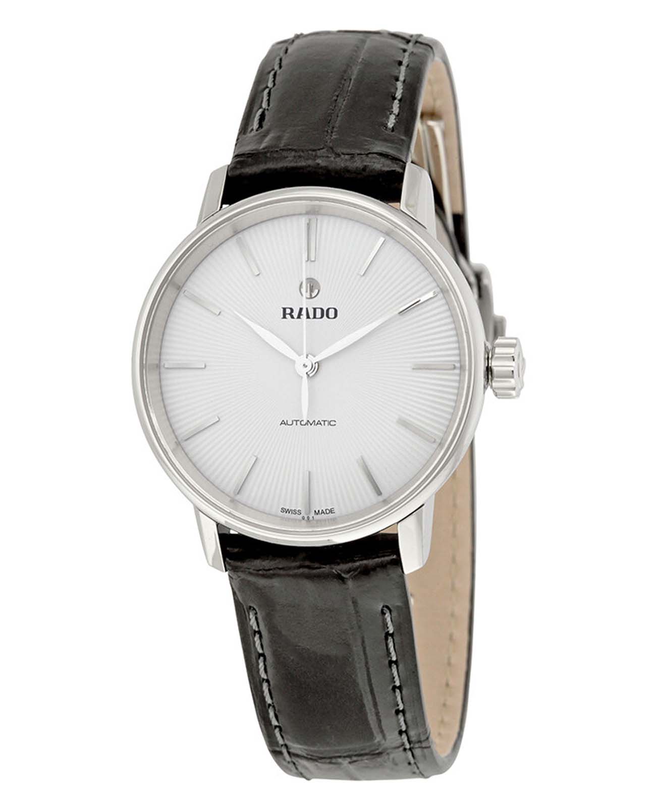 Женские механические швейцарские часы с автоподзаводом Rado Coupole Classic Automatic R22862015. Сапфировое стеклоСапфировое стеклоПрочный и надёжный материал из кристалла сапфира синтетического происхождения, характеризующийся особой твёрдостью и устойчивостью к царапинам и повреждениям. устойчивое к мелким механическим повреждениям. Корпус часов изготовлен из нержавеющей стали. Класс водозащиты: 50 метров, позволит защитить корпус от случайных брызг или капель дождя. Кожаный ремешок на раскладной застёжкеРаскладная застёжкаТакой тип застёжки используется только на браслетах из металла. Она никогда не раскрывается полностью, происходит разделение на 2 и более частей. Раскладывающая застёжка снизит вероятность потери часов к минимуму..