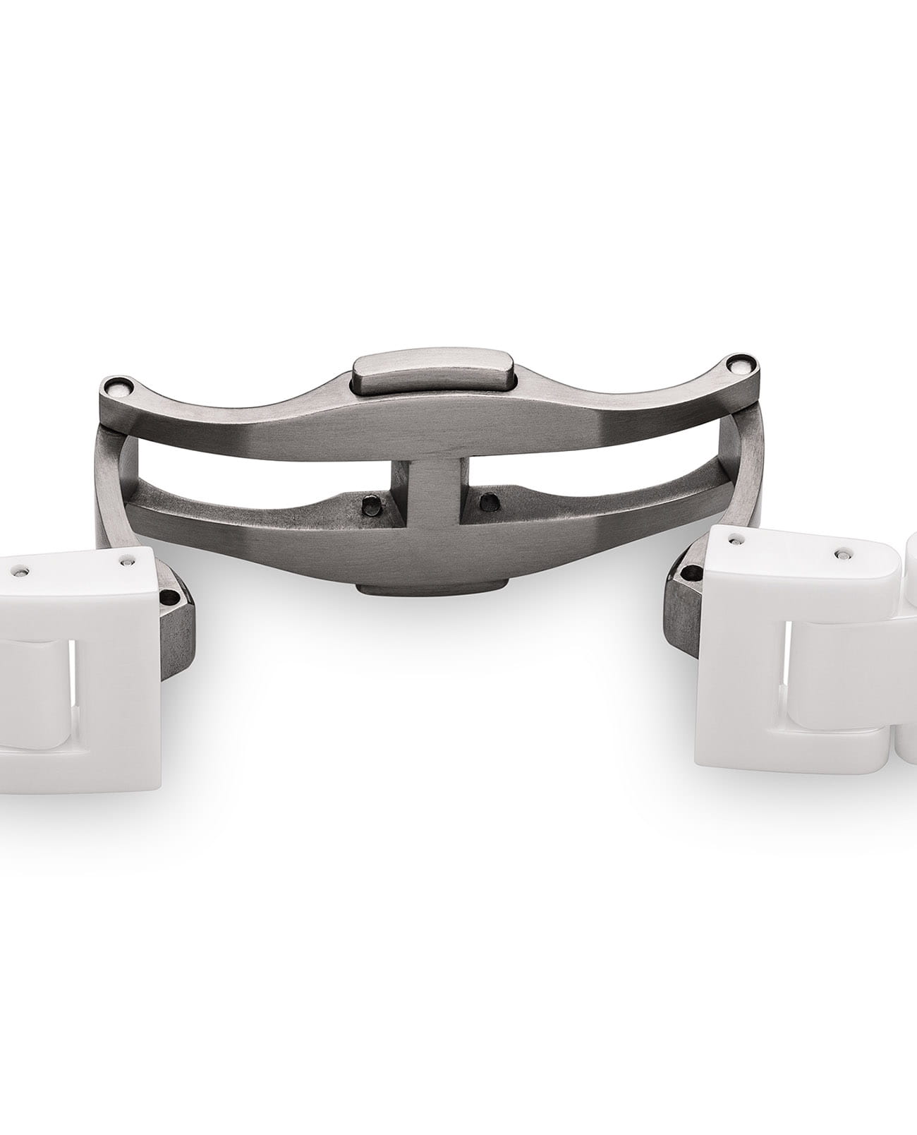 Премиальная модель с перламутровым циферблатом привлекает изящным силуэтом, это отличный вариант для дополнения делового костюма или вечернего наряда. Перед сиянием россыпи 12 бриллиантов просто невозможно устоять. Часы оснащены швейцарским механизмом ETA 956.112. Корпус и браслет из высокотехнологичной плазменной керамикиВысокотехнологичная плазменная керамикаИнновационный материал, технология запатентована. Выплавление керамики осуществляется в печи при 20 000 °C, белоснежный материал под воздействием ультравысокой температуры приобретает уникальный блеск, присущий металлам.. Сапфировое стекло, устойчивое к возникновению царапин. Водонепроницаемость 5 бар. . Апертура даты. Диаметр корпуса: 30 мм.