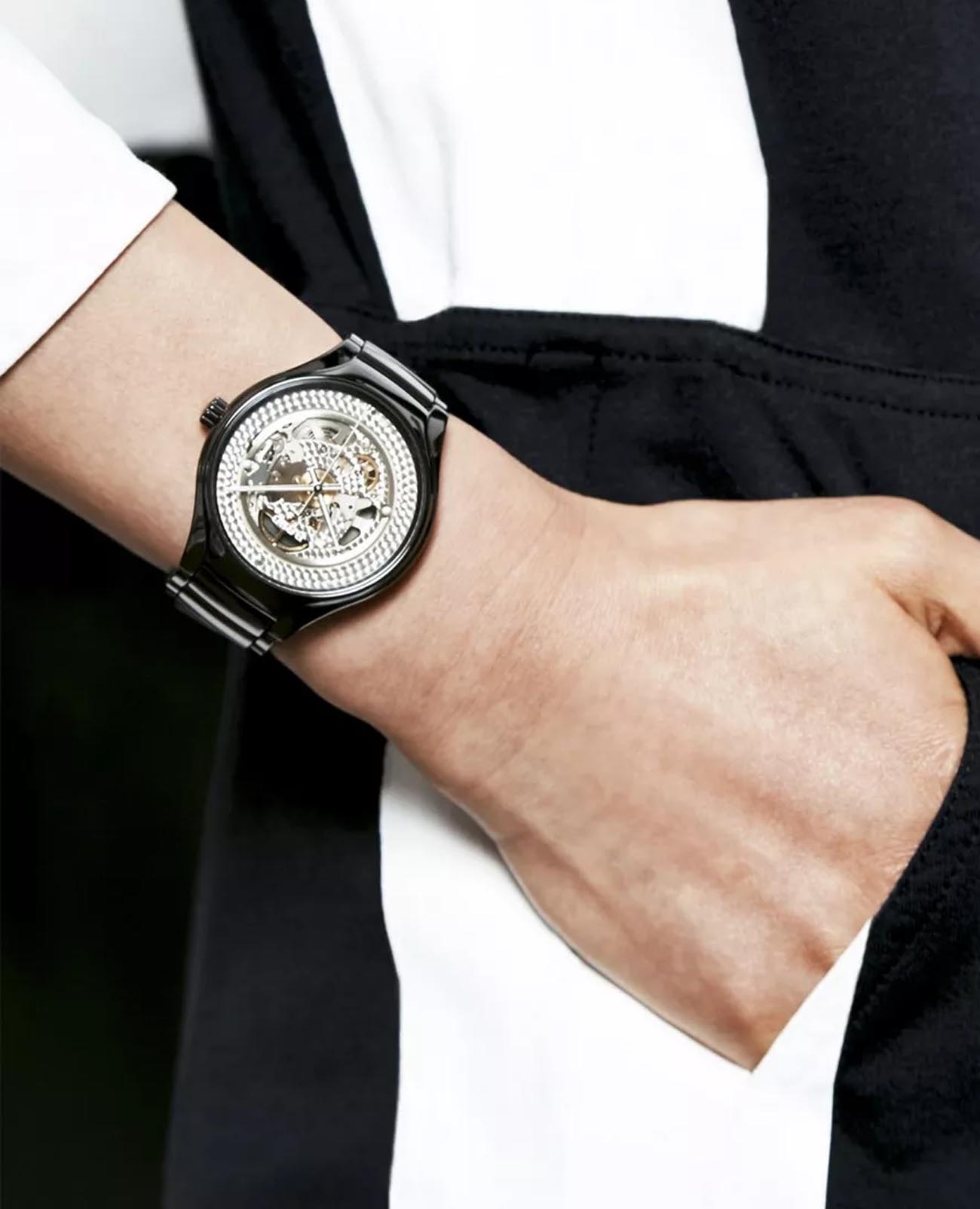 Женские механические швейцарские часы-скелетоны Rado True Shadow Automatic Limited Edition R27100122. Лимитированный выпуск (1001 экземпляр) Kunihiko Morinaga - модель создана при участии известного японского дизайнера Кунихико Моринаги. Сапфировое стеклоСапфировое стеклоПрочный и надёжный материал из кристалла сапфира синтетического происхождения, характеризующийся особой твёрдостью и устойчивостью к царапинам и повреждениям. устойчивое к мелким механическим повреждениям. Корпус часов изготовлен из высокотехнологичной керамикиВысокотехнологичная керамикаИнновационный запатентованный Rado материал с гладкой или матовой поверхностью. Керамика за счёт кристаллической структуры обладает повышенной устойчивостью от возникновения царапин. Материал способен принимать температуру тела человека, обеспечивая невероятный комфорт при ношении.. Скелетонизированный циферблат. Класс водозащиты: 50 метров, позволит защитить корпус от случайных брызг или капель дождя. Браслет высокотехнологичной керамикиВысокотехнологичная керамикаИнновационный запатентованный Rado материал с гладкой или матовой поверхностью. Керамика за счёт кристаллической структуры обладает повышенной устойчивостью от возникновения царапин. Материал способен принимать температуру тела человека, обеспечивая невероятный комфорт при ношении. на застёжке «бабочка» с кнопкамиЗастёжка "бабочка"Такой вид застёжки дополняется предохранителями, помогающими избежать случайного раскрытия браслета. Обладают изящным исполнением. .
