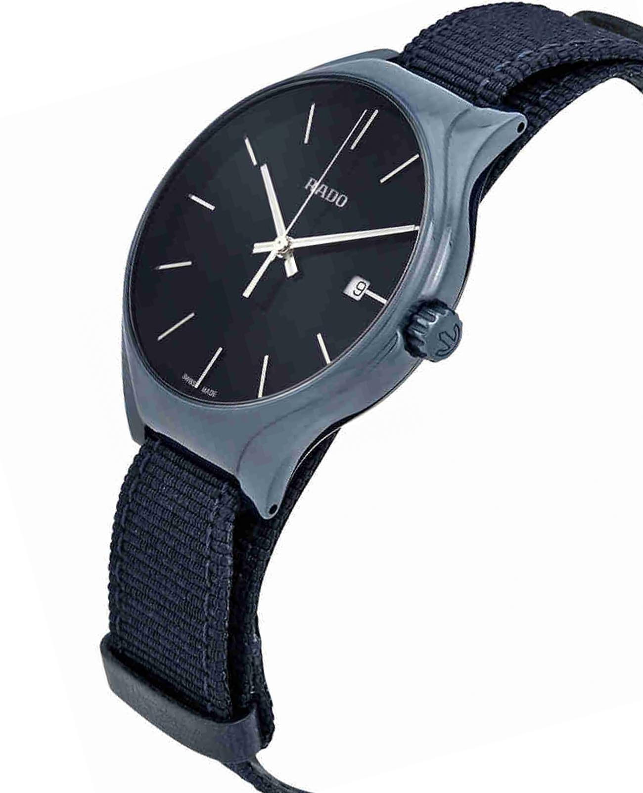 Женские кварцевые швейцарские часы Rado True R27235206. Корпус часов изготовлен из высокотехнологичной керамикиВысокотехнологичная керамикаИнновационный запатентованный Rado материал с гладкой или матовой поверхностью. Керамика за счёт кристаллической структуры обладает повышенной устойчивостью от возникновения царапин. Материал способен принимать температуру тела человека, обеспечивая невероятный комфорт при ношении.. Тканевый ремешок на стандартной застёжке. Сапфировое стеклоСапфировое стеклоПрочный и надёжный материал из кристалла сапфира синтетического происхождения, характеризующийся особой твёрдостью и устойчивостью к царапинам и повреждениям. устойчивое к мелким механическим повреждениям. Класс водозащиты: 50 метров, позволит защитить корпус от случайных брызг или капель дождя. Окошко даты находится в положении 3 часа.