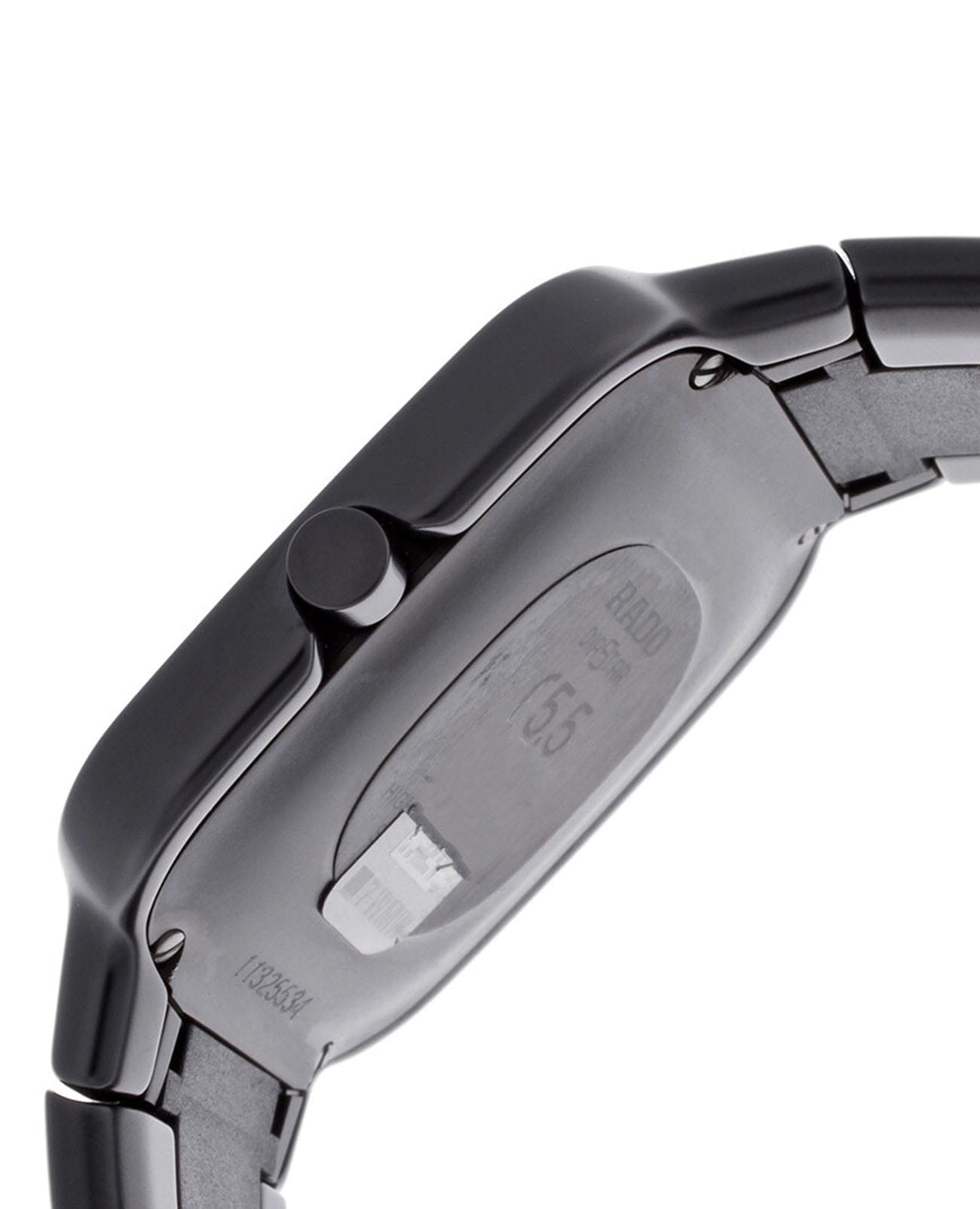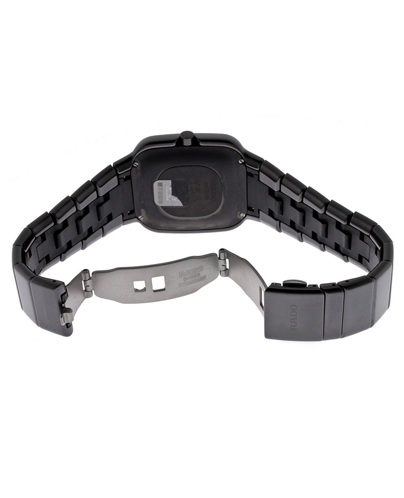 Мужские механические швейцарские часы с автоподзаводом Rado R5.5 R28919152. Сапфировое стеклоСапфировое стеклоПрочный и надёжный материал из кристалла сапфира синтетического происхождения, характеризующийся особой твёрдостью и устойчивостью к царапинам и повреждениям. устойчивое к мелким механическим повреждениям. Корпус часов изготовлен из высокотехнологичной плазменной керамикиВысокотехнологичная плазменная керамикаИнновационный материал, технология запатентована. Выплавление керамики осуществляется в печи при 20 000 °C, белоснежный материал под воздействием ультравысокой температуры приобретает уникальный блеск, присущий металлам.. Окошко даты находится в положении 3 часа. Стрелки с люминесцентным покрытиемЛюминесцентное покрытиеПозволяет считывать показания времени в темноте. Производители наносят на стрелки, часовые индексы, безель или поверхность циферблата светонакопительный состав, дающий холодное свечение.. Класс водозащиты: 30 метров, позволит защитить корпус от случайных брызг или капель дождя. Браслет из высокотехнологичной плазменной керамикиВысокотехнологичная плазменная керамикаИнновационный материал, технология запатентована. Выплавление керамики осуществляется в печи при 20 000 °C, белоснежный материал под воздействием ультравысокой температуры приобретает уникальный блеск, присущий металлам. на раскладной застёжкеРаскладная застёжкаТакой тип застёжки используется только на браслетах из металла. Она никогда не раскрывается полностью, происходит разделение на 2 и более частей. Раскладывающая застёжка снизит вероятность потери часов к минимуму..