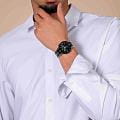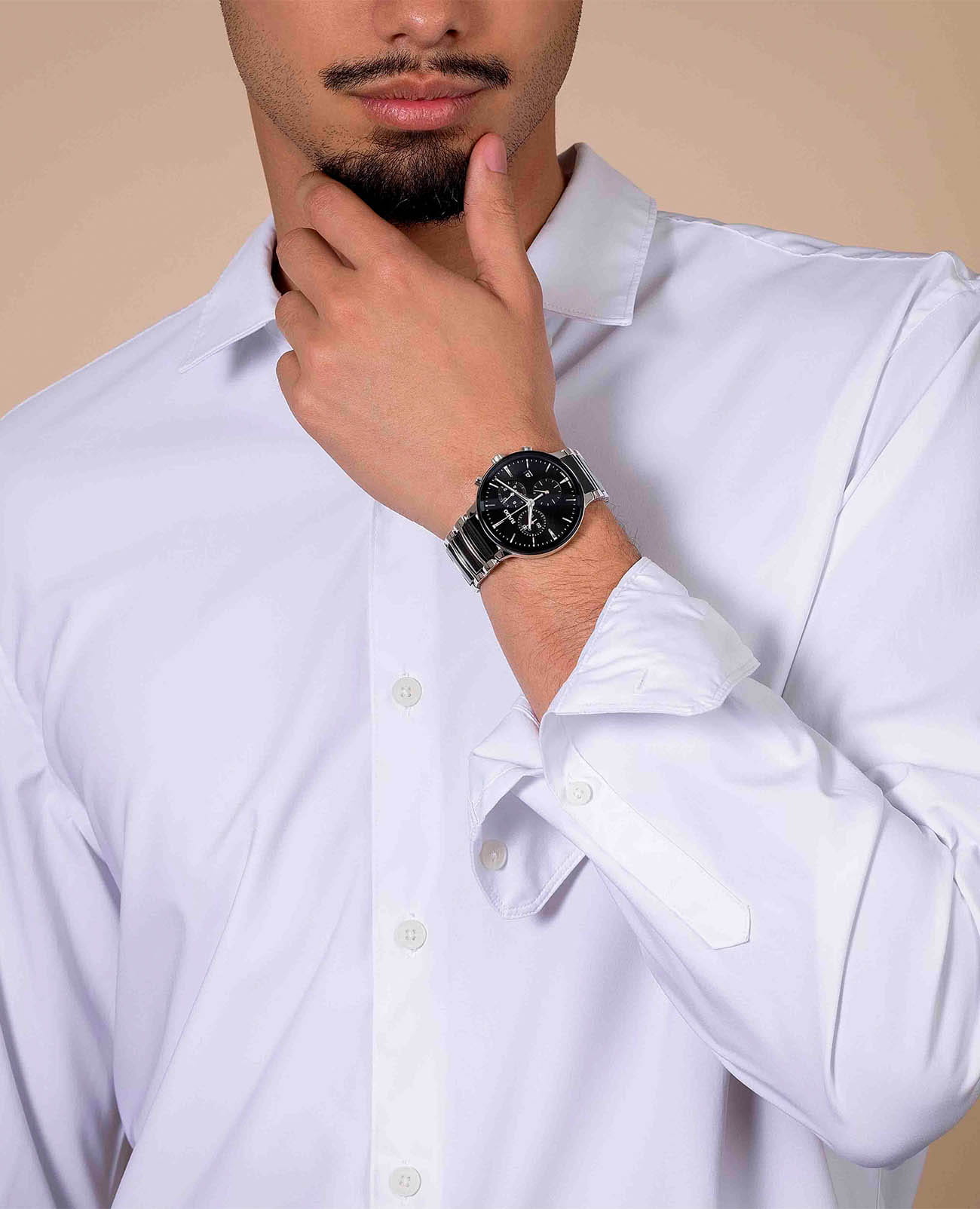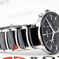 Мужские кварцевые часы Rado Centrix Chronograph — это гармоничное сочетание художественного выражения и изысканного дизайна. Корпус диаметром 41 мм и толщиной 11,4 мм выполнен из нержавеющей стали. Циферблат чёрного цвета с эффектом «солнечные лучи» оформлен накладными индексами цвета родия с люминесцентным покрытиемЛюминесцентное покрытиеПозволяет считывать показания времени в темноте. Производители наносят на стрелки, часовые индексы, безель или поверхность циферблата светонакопительный состав, дающий холодное свечение. Super-Luminova®, обеспечивающим отличную читаемость в темноте. Циферблат защищён выпуклым сапфировым стекломСапфировое стеклоПрочный и надёжный материал из кристалла сапфира синтетического происхождения, характеризующийся особой твёрдостью и устойчивостью к царапинам и повреждениям. с антибликовым покрытиемАнтибликовое покрытиеСлой оксида металла в 0,13-0,3 микрон, благодаря которому стекло часов не бликует и не отражает свет. Антибликовое покрытие уменьшает отражение света в 10 раз, обеспечивая отличную читаемость показателей циферблата. с обеих сторон. Механизм — швейцарский кварцевый с функцией хронографаХронографФункция позволяет измерять отрезки времени с особой точностью: часы, минуты, секунды. Верным признаком хронографа является наличие на циферблате 3 дополнительных окошек-счётчиков., оснащённый 22 камнями и технологиями Precidrive и Heavydrive, обеспечивающими точность хода ±10 секунд в год. Циферблат включает три субциферблата: 30-минутный счётчик, индикатор одной десятой секунды и малые секунды в положении 6 часов. Окошко даты расположено в положении 4 часов. Часы оснащены браслетом из полированной нержавеющей стали с вставками из высокотехнологичной керамикиВысокотехнологичная керамикаИнновационный запатентованный Rado материал с гладкой или матовой поверхностью. Керамика за счёт кристаллической структуры обладает повышенной устойчивостью от возникновения царапин. Материал способен принимать температуру тела человека, обеспечивая невероятный комфорт при ношении. чёрного цвета и застёжкой «бабочка» с кнопкамиЗастёжка "бабочка"Такой вид застёжки дополняется предохранителями, помогающими избежать случайного раскрытия браслета. Обладают изящным исполнением. из матовой стали. Водонепроницаемость 50 м позволяет использовать часы в повседневных условиях. Гарантия — 5 лет. Идеальный выбор для тех, кто ценит точность, стиль и швейцарское качество.
