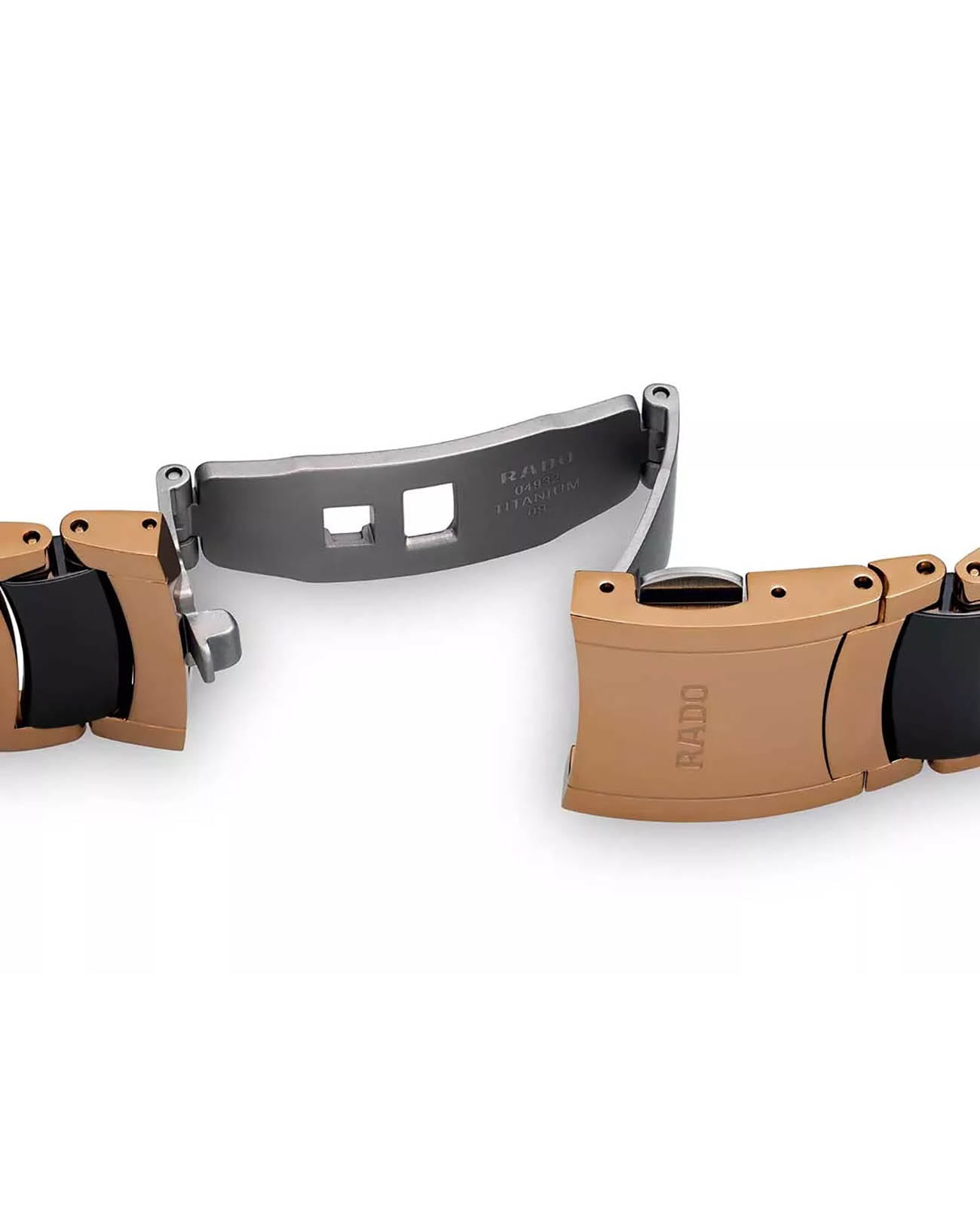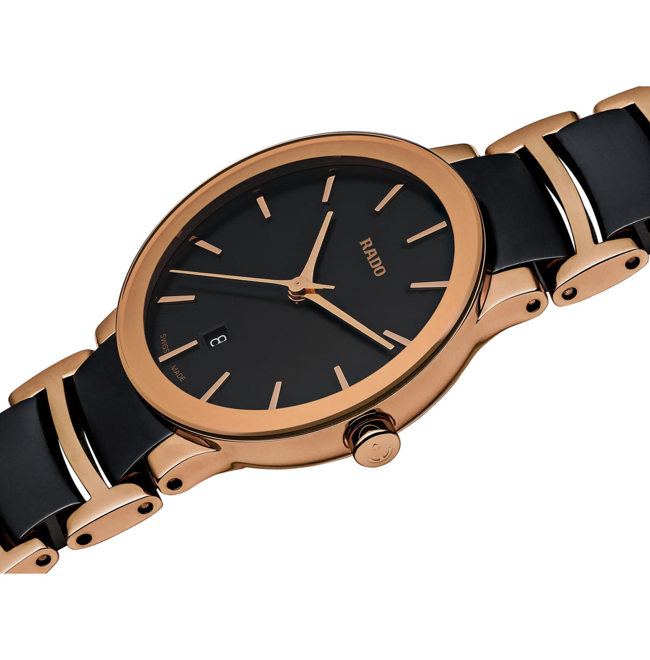 Аксессуар в золотом цвете станет достойным дополнением к образу солидной и деловой женщины. Это стильная деталь современного имиджа, особый шик ей придают 12 бриллиантов. Понаблюдать за движением частиц механизма можно через прозрачную заднюю крышку. Надёжный корпус из хирургической стали 316L. Браслет имеет вставки из высокотехнологичной керамикиВысокотехнологичная керамикаИнновационный запатентованный Rado материал с гладкой или матовой поверхностью. Керамика за счёт кристаллической структуры обладает повышенной устойчивостью от возникновения царапин. Материал способен принимать температуру тела человека, обеспечивая невероятный комфорт при ношении.. Износоустойчивое PVD-покрытиеPVDУльтратонкое покрытие наносится в технике вакуумного напыления, сочетает в себе нитрид титана особой прочности со слоем золота или оксида хрома. Несёт в себе декоративную или защитную функцию. цвета розового золота. Стекло из сапфира. Апертура даты. Диаметр корпуса: 28 мм.