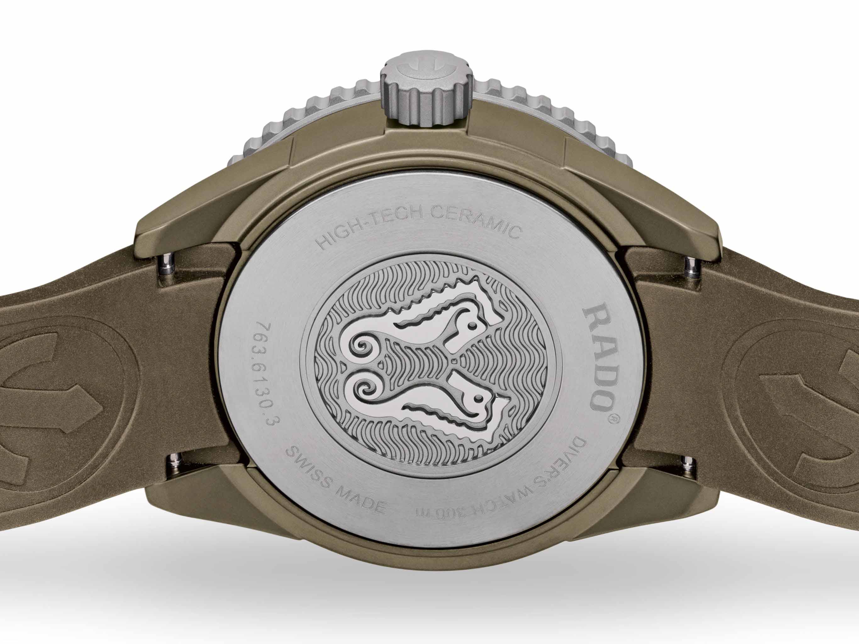 Высокотехнологичные керамические часы Captain Cook для дайверов (300 WR). Стрелки и индексы дайверских часов, сертифицированных по стандарту ISO 6425, покрыты SuperLuminova®, что обеспечивает отличную видимость на матовом оливково-зеленом циферблате. 43-миллиметровый моноблочный корпус изготовлен из матовой оливково-зеленой высокотехнологичной керамикиВысокотехнологичная керамикаИнновационный запатентованный Rado материал с гладкой или матовой поверхностью. Керамика за счёт кристаллической структуры обладает повышенной устойчивостью от возникновения царапин. Материал способен принимать температуру тела человека, обеспечивая невероятный комфорт при ношении., а вращающийся безельБезельВнешний ободок, закрепляющий стекло. В спортивных часах так называется поворотное кольцо с делениями на циферблате, выполняет роль таймера – замеряет отрезки времени на шкале. Неподвижный безель – элемент декора. Однонаправленно вращающийся безель на дайверских часах позволяет фиксировать моменты погружения и выныривания на поверхность. - из полированной нержавеющей стали. Внутри механизм Rado R763 с автоподзаводом превосходит стандартные требования по проверке точности в 3-5 положениях и обеспечивает 80 часов запаса хода. Эта модель поставляется с матовым каучуковым ремешком оливково-зеленого цвета. Какой бы ни была ваша область исследований, ваш высокотехнологичный керамический дайвер Captain Cook станет надежным партнером на долгие годы.