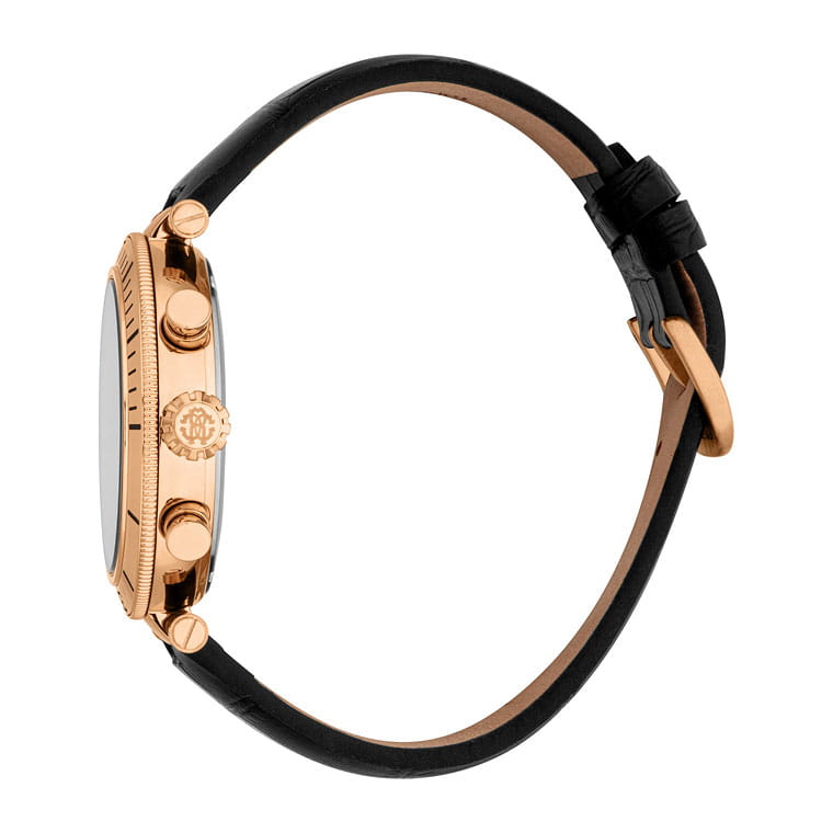 Roberto Cavalli Ritmo RC5G128L0035 — мужская кварцевая модель с ярко выраженным спортивным стилем и практичным функционалом, сочетающая строгий дизайн и надёжность. Корпус с PVD-покрытиемPVDУльтратонкое покрытие наносится в технике вакуумного напыления, сочетает в себе нитрид титана особой прочности со слоем золота или оксида хрома. Несёт в себе декоративную или защитную функцию. диаметром 43 мм и толщиной 12 мм выполнен из нержавеющей стали, защищён прочным минеральным стекломМинеральное стеклоМинеральное стекло представляет собой искусственно выращенный минерал кварца. Такое стекло отличается особой устойчивостью к повреждениям и царапинам. Уступает по некоторым качествам сапфировому стеклу., устойчивым к повседневным повреждениям и сохраняющим хорошую читаемость циферблата. Водозащита 100 м делает часы надёжным спутником во время плавания и активного отдыха. Функциональность поддерживается индикаторами хронографаХронографФункция позволяет измерять отрезки времени с особой точностью: часы, минуты, секунды. Верным признаком хронографа является наличие на циферблате 3 дополнительных окошек-счётчиков. и даты, которые органично вписаны в оформление циферблата. Кожаный ремешок шириной 22 мм обеспечивает комфортную посадку и долговечность, а также гармонично завершает образ модели, которая одинаково хорошо подойдёт как для динамичного повседневного ритма, так и для более строгих ситуаций.