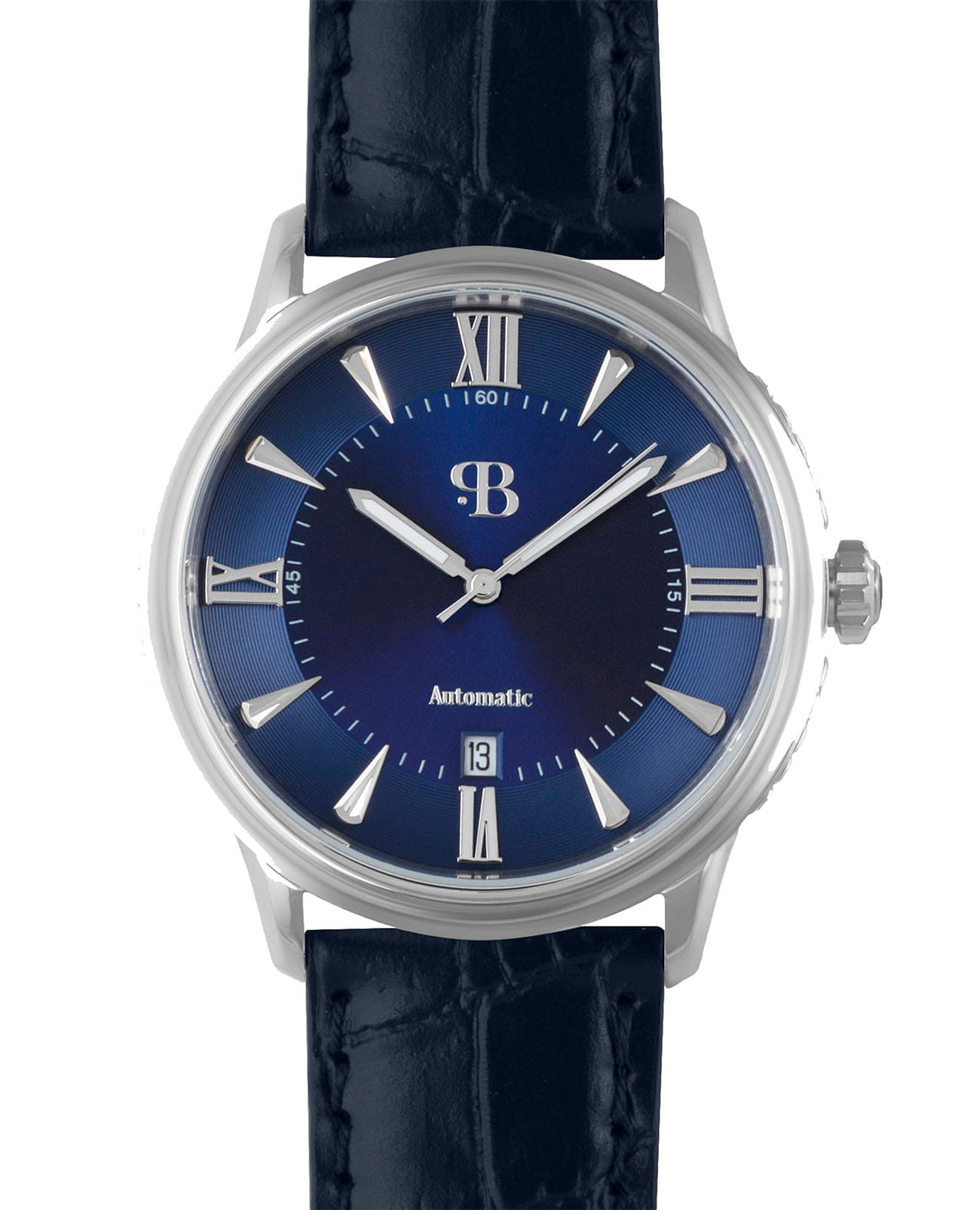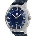 Мужские механические часы с автоподзаводом — это классический аксессуар для ценителя традиций. Корпус размером 42×11 мм выполнен из нержавеющей стали. Циферблат синего цвета оформлен римскими цифрами и стрелками. Окошко даты расположено в положении 3 часов. Стрелки с люминесцентным покрытиемЛюминесцентное покрытиеПозволяет считывать показания времени в темноте. Производители наносят на стрелки, часовые индексы, безель или поверхность циферблата светонакопительный состав, дающий холодное свечение., обеспечивающим хорошую читаемость в темноте. Циферблат защищён минеральным стекломМинеральное стеклоМинеральное стекло представляет собой искусственно выращенный минерал кварца. Такое стекло отличается особой устойчивостью к повреждениям и царапинам. Уступает по некоторым качествам сапфировому стеклу.. Часы оснащены кожаным ремешком с стандартной застёжкой. Водонепроницаемость 50 м позволяет использовать часы в повседневных условиях, включая плавание на поверхности. Идеальный выбор для тех, кто ценит стиль, точность и надёжность.