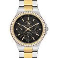 Женские кварцевые часы Santa Barbara Polo & Racquet Club — это функциональный и стильный аксессуар для активной женщины. Корпус диаметром 34 мм и высотой 42 мм выполнен из латуни. Безель с IP-покрытиемIP-покрытиеМетод ионного напыления. Демонстрирует повышенную устойчивость к истиранию, окислению и химическим веществам. Под воздействием высокого давления и температуры около 1500°C молекулы металла надёжно соединяются с частицами корпуса часов. и украшен кристаллами. Циферблат чёрного цвета оформлен по технологии Sunray («солнечные лучи»), дополнен накладными метками в виде штрихов и фирменным логотипом. Указатели дня недели и даты вынесены на отдельные субциферблаты, также присутствует индикация 24-часового формата времени. Стрелки и метки с люминесцентным покрытиемЛюминесцентное покрытиеПозволяет считывать показания времени в темноте. Производители наносят на стрелки, часовые индексы, безель или поверхность циферблата светонакопительный состав, дающий холодное свечение., обеспечивающим хорошую читаемость в темноте. Циферблат защищён минеральным стекломМинеральное стеклоМинеральное стекло представляет собой искусственно выращенный минерал кварца. Такое стекло отличается особой устойчивостью к повреждениям и царапинам. Уступает по некоторым качествам сапфировому стеклу.. Механизм — кварцевый калибр VX3JE1. Часы оснащены стальным браслетом с частичным IP-покрытиемIP-покрытиеМетод ионного напыления. Демонстрирует повышенную устойчивость к истиранию, окислению и химическим веществам. Под воздействием высокого давления и температуры около 1500°C молекулы металла надёжно соединяются с частицами корпуса часов. и раскладной застёжкойРаскладная застёжкаТакой тип застёжки используется только на браслетах из металла. Она никогда не раскрывается полностью, происходит разделение на 2 и более частей. Раскладывающая застёжка снизит вероятность потери часов к минимуму.. Водонепроницаемость 50 м позволяет использовать часы в повседневных условиях. Идеальный выбор для тех, кто ценит стиль, функциональность и качество.