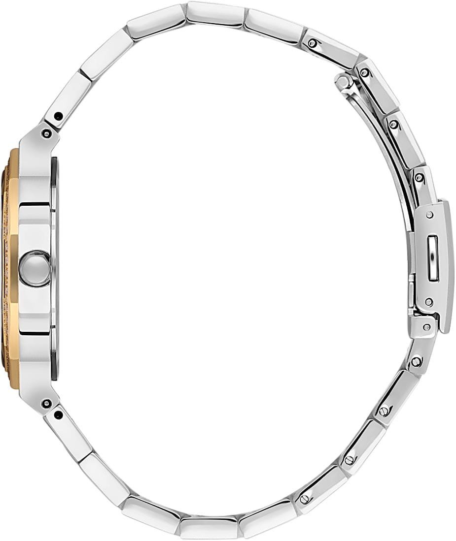 Женские кварцевые часы Santa Barbara Polo & Racquet Club Unique SB.1.10552-4 — это стильный аксессуар, подчеркивающий индивидуальность. Изысканный корпус диаметром 35 мм выполнен из нержавеющей стали 316L с 12-гранным безелемБезельВнешний ободок, закрепляющий стекло. В спортивных часах так называется поворотное кольцо с делениями на циферблате, выполняет роль таймера – замеряет отрезки времени на шкале. Неподвижный безель – элемент декора. Однонаправленно вращающийся безель на дайверских часах позволяет фиксировать моменты погружения и выныривания на поверхность. с IP-покрытиемIP-покрытиеМетод ионного напыления. Демонстрирует повышенную устойчивость к истиранию, окислению и химическим веществам. Под воздействием высокого давления и температуры около 1500°C молекулы металла надёжно соединяются с частицами корпуса часов., украшенным кристаллами. Изящный циферблат дополнен накладными метками в виде точек, украшенных кристаллами, а также фирменным логотипом. Стрелки скругленные с люминесцентным покрытиемЛюминесцентное покрытиеПозволяет считывать показания времени в темноте. Производители наносят на стрелки, часовые индексы, безель или поверхность циферблата светонакопительный состав, дающий холодное свечение., обеспечивающим хорошую читаемость в темноте. Циферблат защищён минеральным стекломМинеральное стеклоМинеральное стекло представляет собой искусственно выращенный минерал кварца. Такое стекло отличается особой устойчивостью к повреждениям и царапинам. Уступает по некоторым качествам сапфировому стеклу.. Часы оснащены надежным стальным браслетом с раскладной застёжкойРаскладная застёжкаТакой тип застёжки используется только на браслетах из металла. Она никогда не раскрывается полностью, происходит разделение на 2 и более частей. Раскладывающая застёжка снизит вероятность потери часов к минимуму. с частичным IP-покрытиемIP-покрытиеМетод ионного напыления. Демонстрирует повышенную устойчивость к истиранию, окислению и химическим веществам. Под воздействием высокого давления и температуры около 1500°C молекулы металла надёжно соединяются с частицами корпуса часов.. Водонепроницаемость 50 м позволяет использовать часы в повседневных условиях. Идеальный выбор для тех, кто ценит элегантный дизайн и качество.
