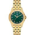 Женские кварцевые часы Santa Barbara Polo & Racquet Club — это изысканный и стильный аксессуар. Корпус диаметром 27 мм выполнен из стали 316L с IP-покрытиемIP-покрытиеМетод ионного напыления. Демонстрирует повышенную устойчивость к истиранию, окислению и химическим веществам. Под воздействием высокого давления и температуры около 1500°C молекулы металла надёжно соединяются с частицами корпуса часов.. БезельБезельВнешний ободок, закрепляющий стекло. В спортивных часах так называется поворотное кольцо с делениями на циферблате, выполняет роль таймера – замеряет отрезки времени на шкале. Неподвижный безель – элемент декора. Однонаправленно вращающийся безель на дайверских часах позволяет фиксировать моменты погружения и выныривания на поверхность. накладной, с матовой обработкой и декоративными болтами. Циферблат зелёного цвета выполнен по технологии Sunray («солнечные лучи») и оформлен точками, инкрустированными кристаллами, и мечевидными стрелками в стиле Sword. Циферблат защищён минеральным стекломМинеральное стеклоМинеральное стекло представляет собой искусственно выращенный минерал кварца. Такое стекло отличается особой устойчивостью к повреждениям и царапинам. Уступает по некоторым качествам сапфировому стеклу.. Механизм — японское кварцевое движение калибра Seiko TMI VJ21C1. Заводная головка выполнена в форме болта с защитой. Часы оснащены стальным браслетом с IP-покрытиемIP-покрытиеМетод ионного напыления. Демонстрирует повышенную устойчивость к истиранию, окислению и химическим веществам. Под воздействием высокого давления и температуры около 1500°C молекулы металла надёжно соединяются с частицами корпуса часов. на раскладной застёжкеРаскладная застёжкаТакой тип застёжки используется только на браслетах из металла. Она никогда не раскрывается полностью, происходит разделение на 2 и более частей. Раскладывающая застёжка снизит вероятность потери часов к минимуму.. Водонепроницаемость 50 м позволяет использовать часы в повседневных условиях. Идеальный выбор для тех, кто ценит американское качество и современный дизайн.